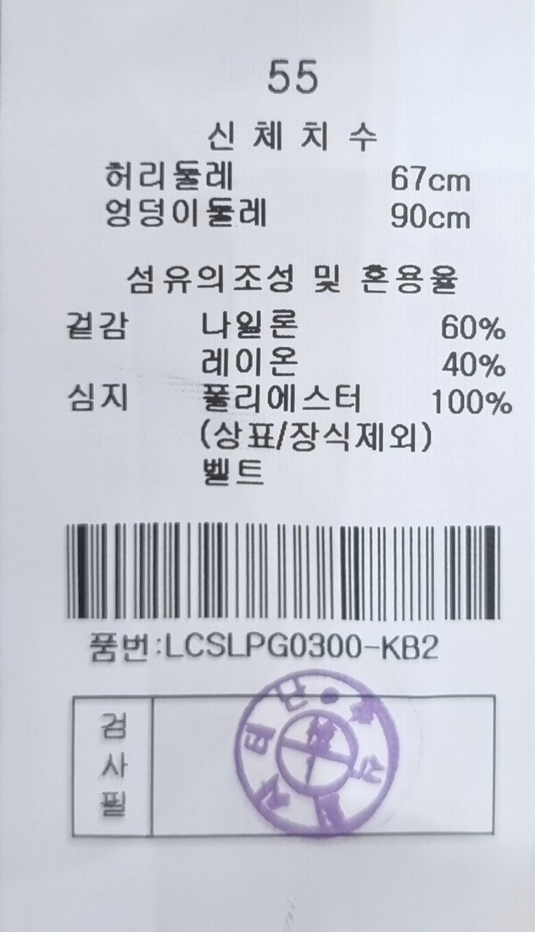 | 1. 제품 소재 (섬유의 조성 또는 혼용률을 백분율로 표시, 기능성인 경우 성적서 또는 허가서) | 나일론:60% 레이온:40% |