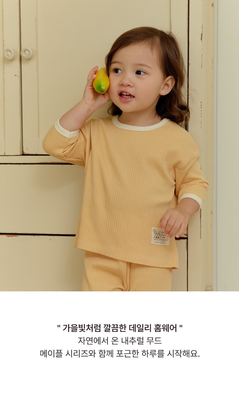 메이플 골지 오렌지 8부 실내복 아기 내복