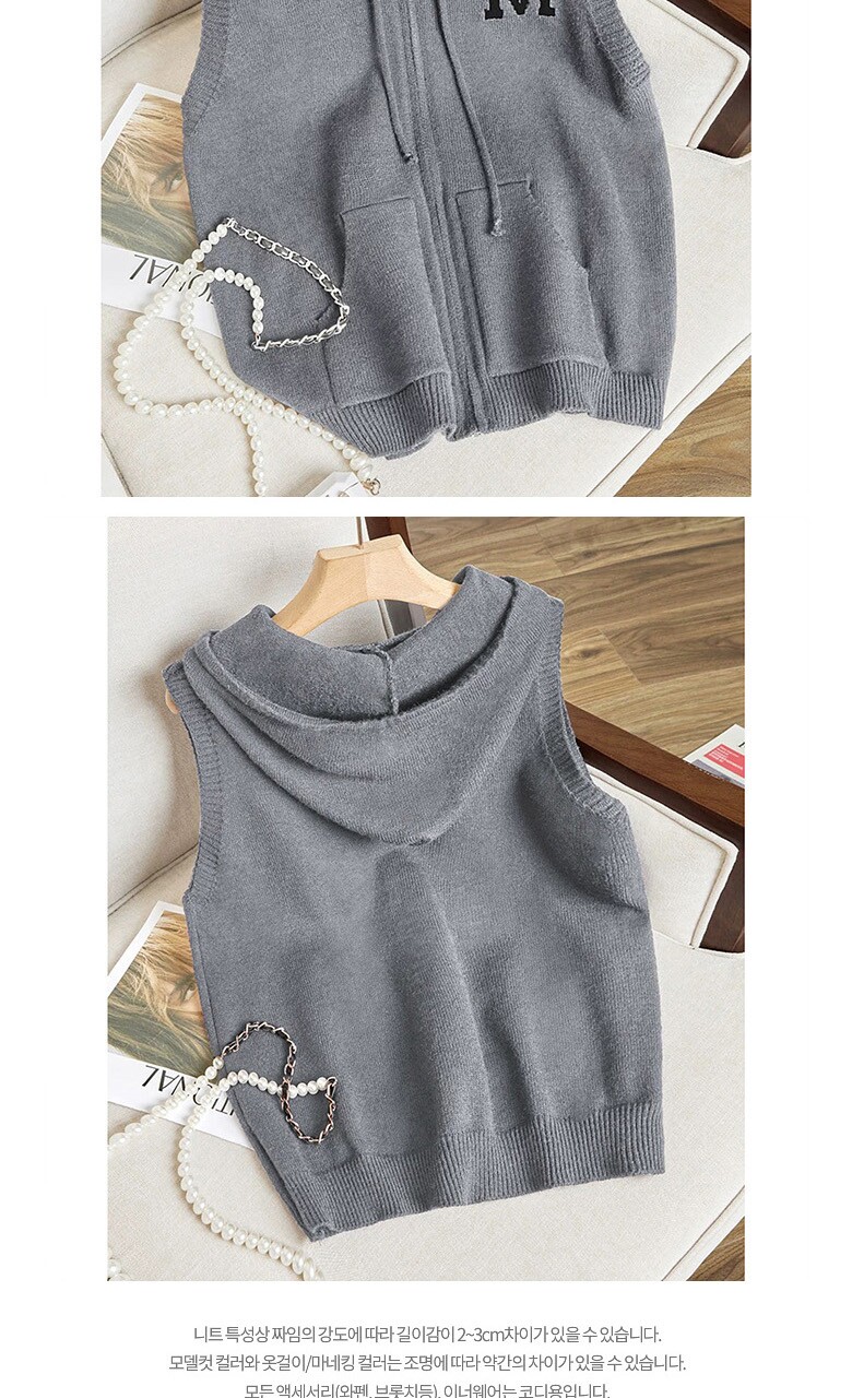 영문 후드 집업 니트 베스트_O2509KV026C