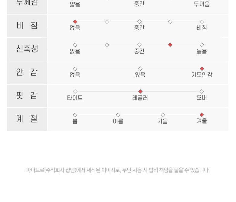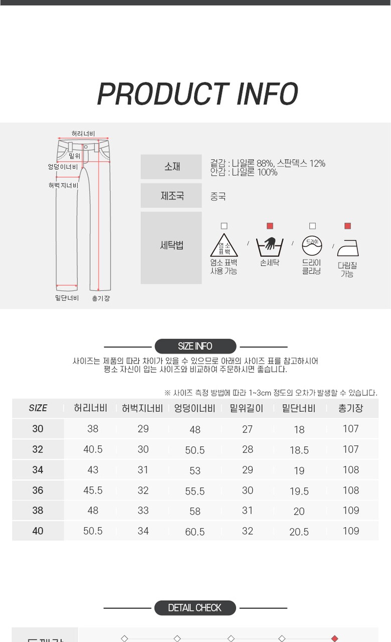 3. 치수 | 30,32,34,36,38 |