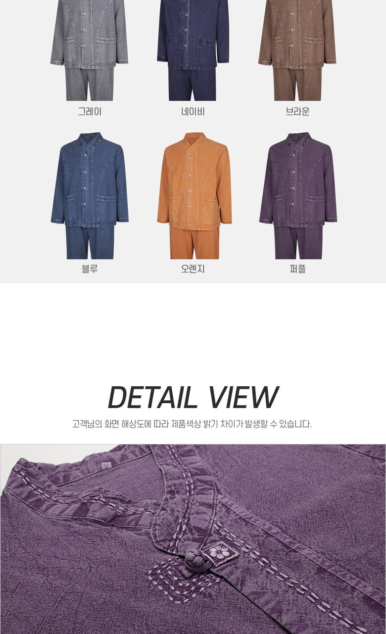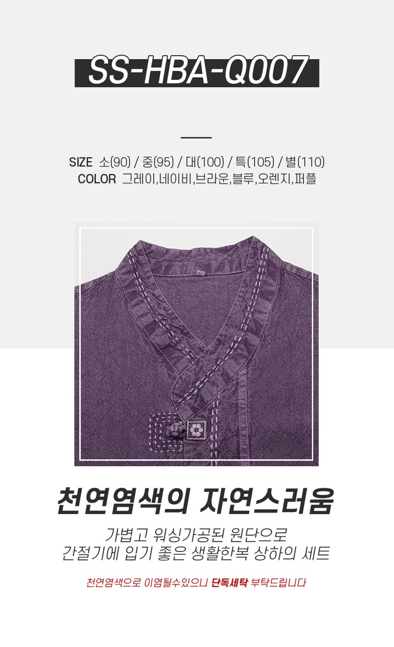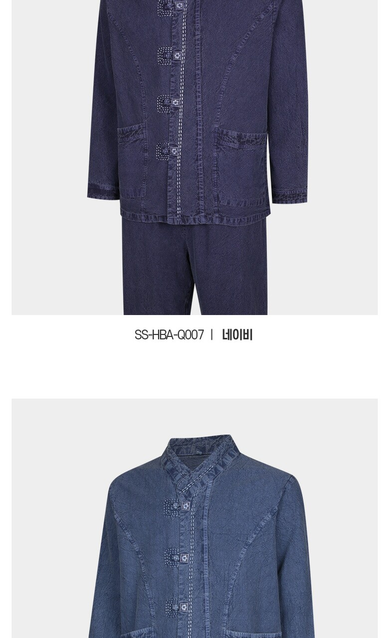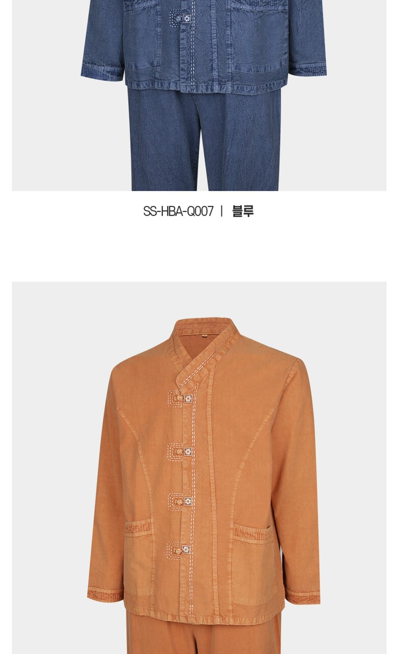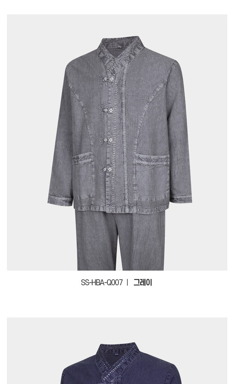 남성 S/F 천연워싱 브이넥 생활한복 상하의 세트 SS-HBA-Q007