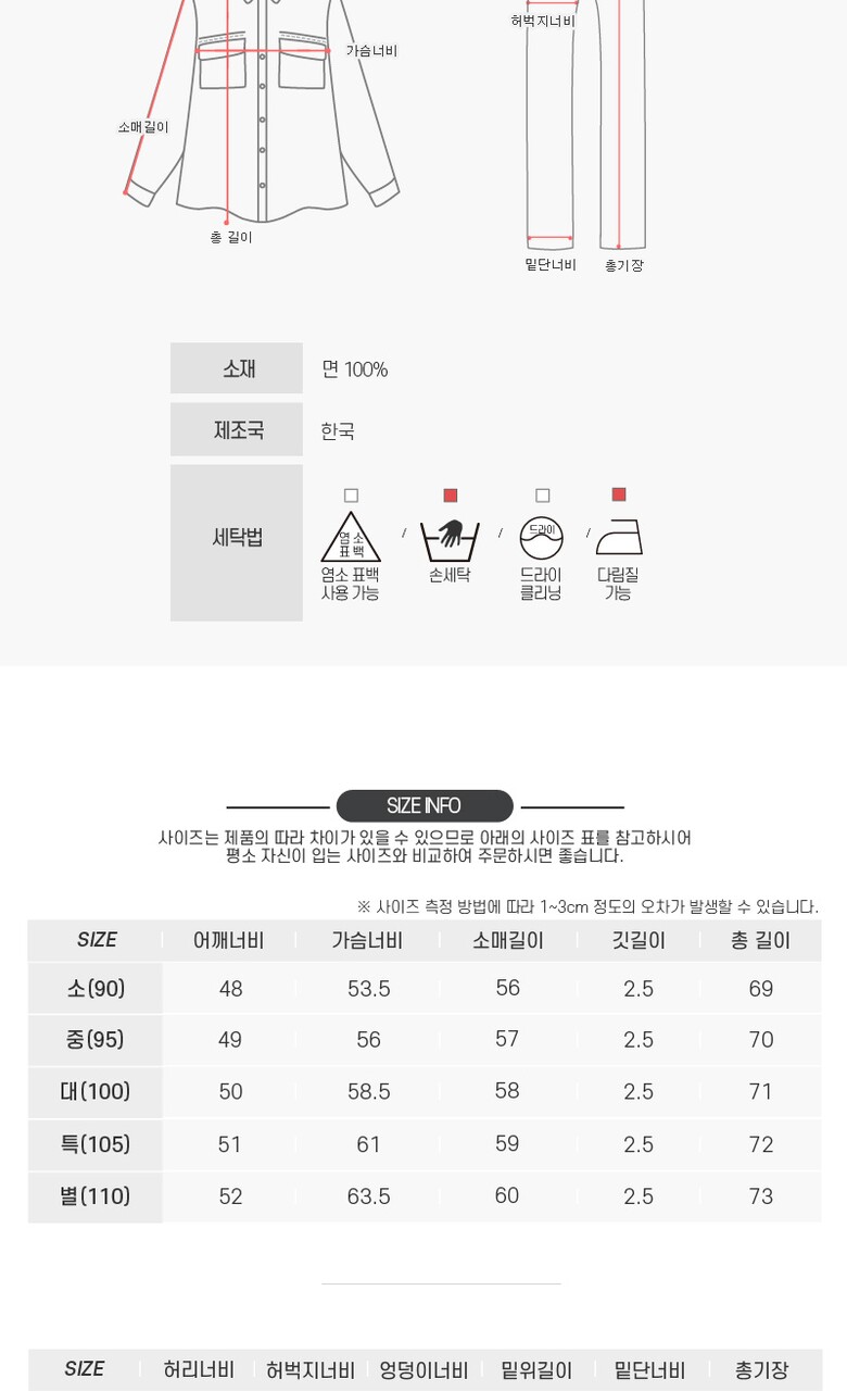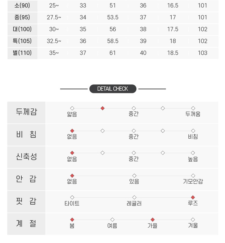 3. 치수 | 소(90),중(95),대(100),특(105),별(110) |