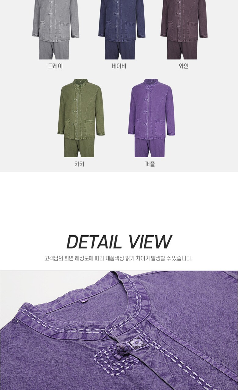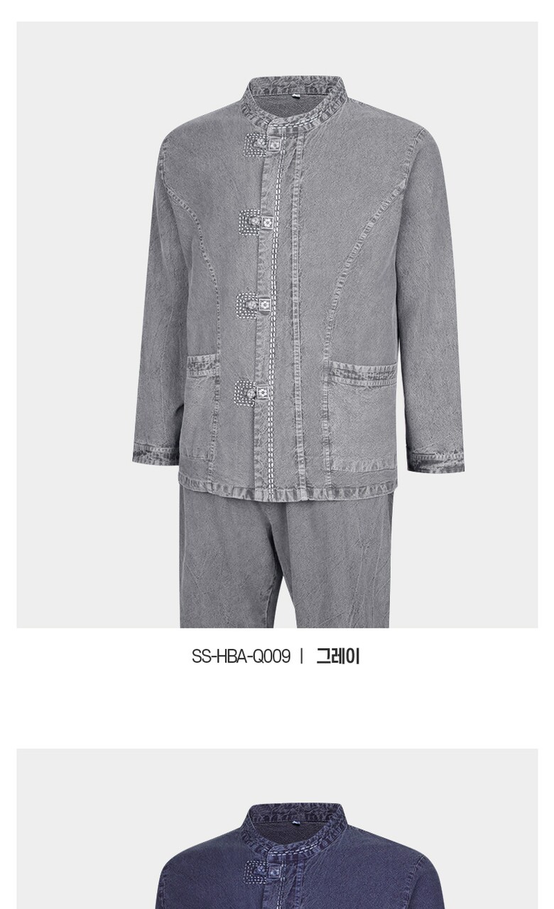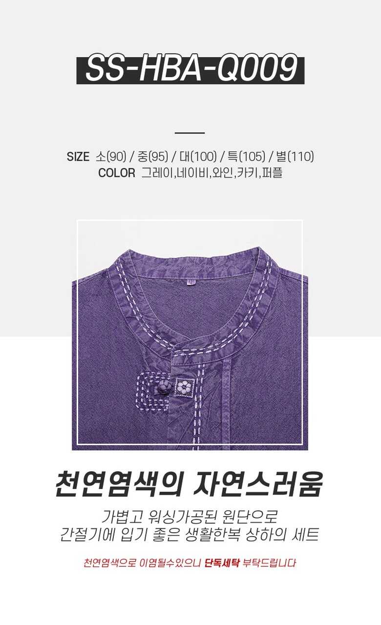 남성 워싱가공 천연염색 생활한복 상하의 세트 SS-HBA-Q009