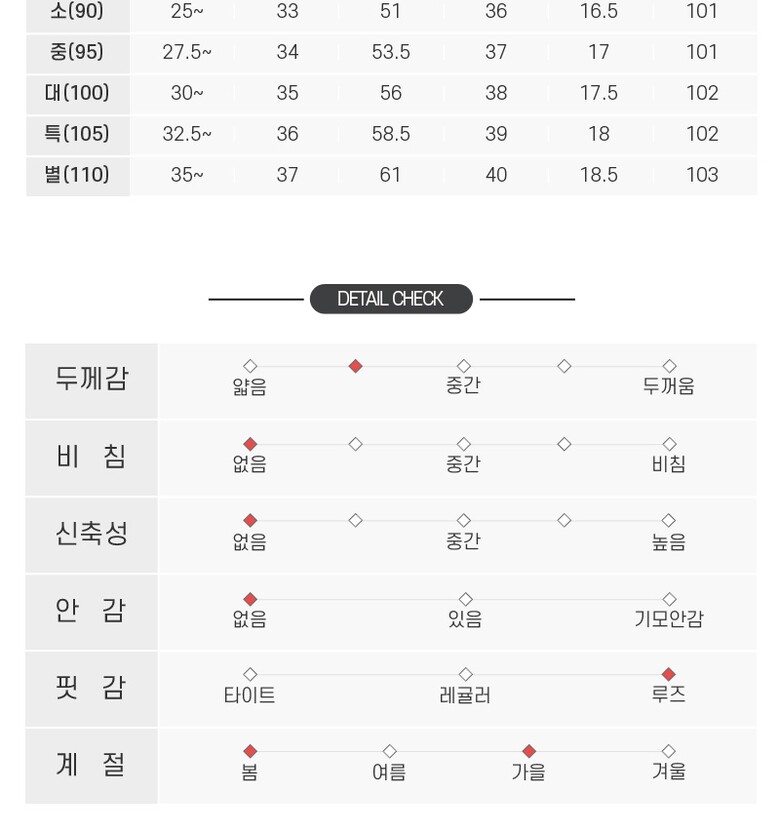 3. 치수 | 소(90),중(95),대(100),특(105),별(110) |