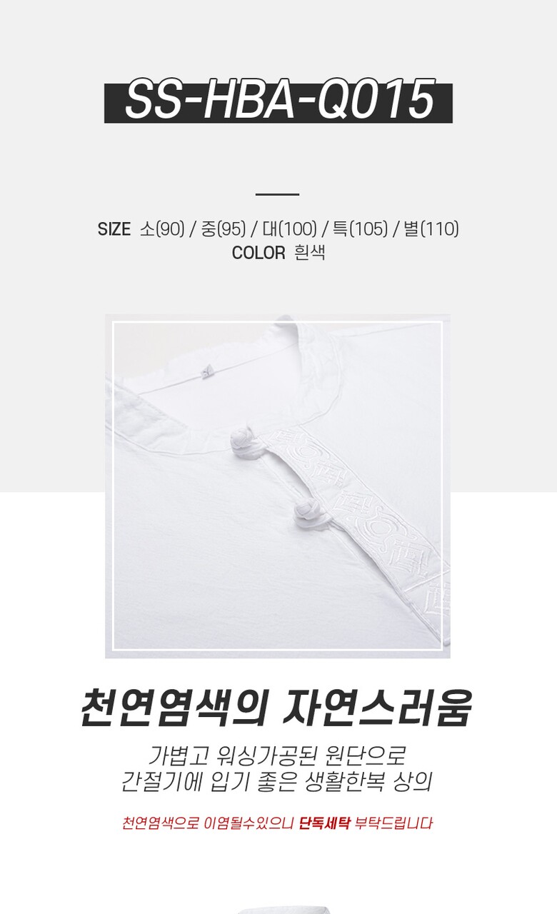 남성 헨리넥 투 버튼 생활한복 상의 SS-HBA-Q015