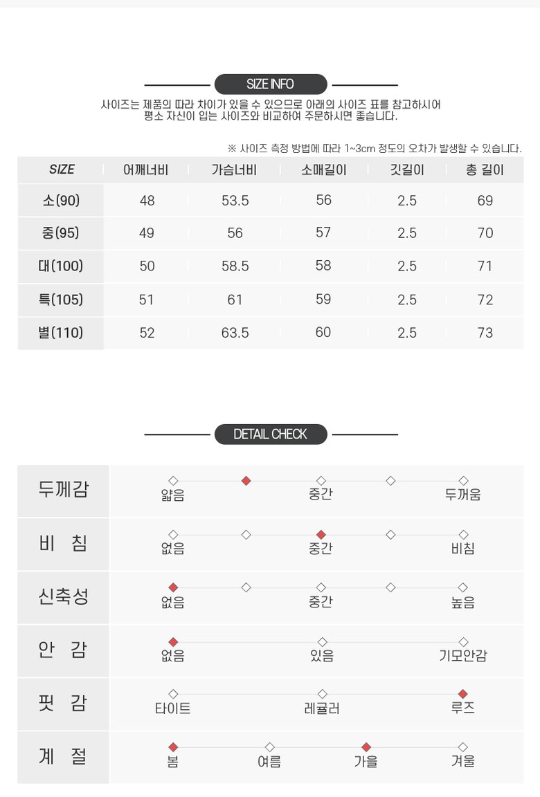 3. 치수 | 소(90),중(95),대(100),특(105),별(110) |