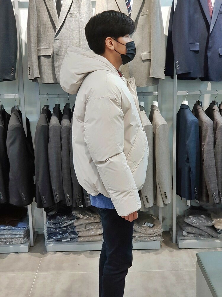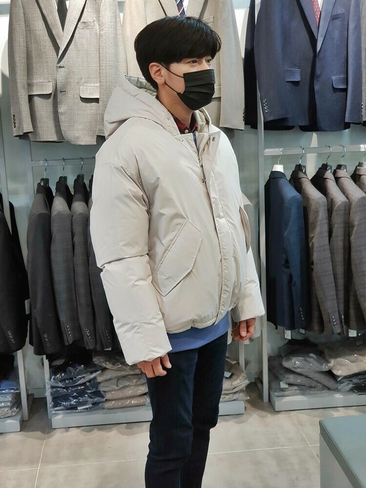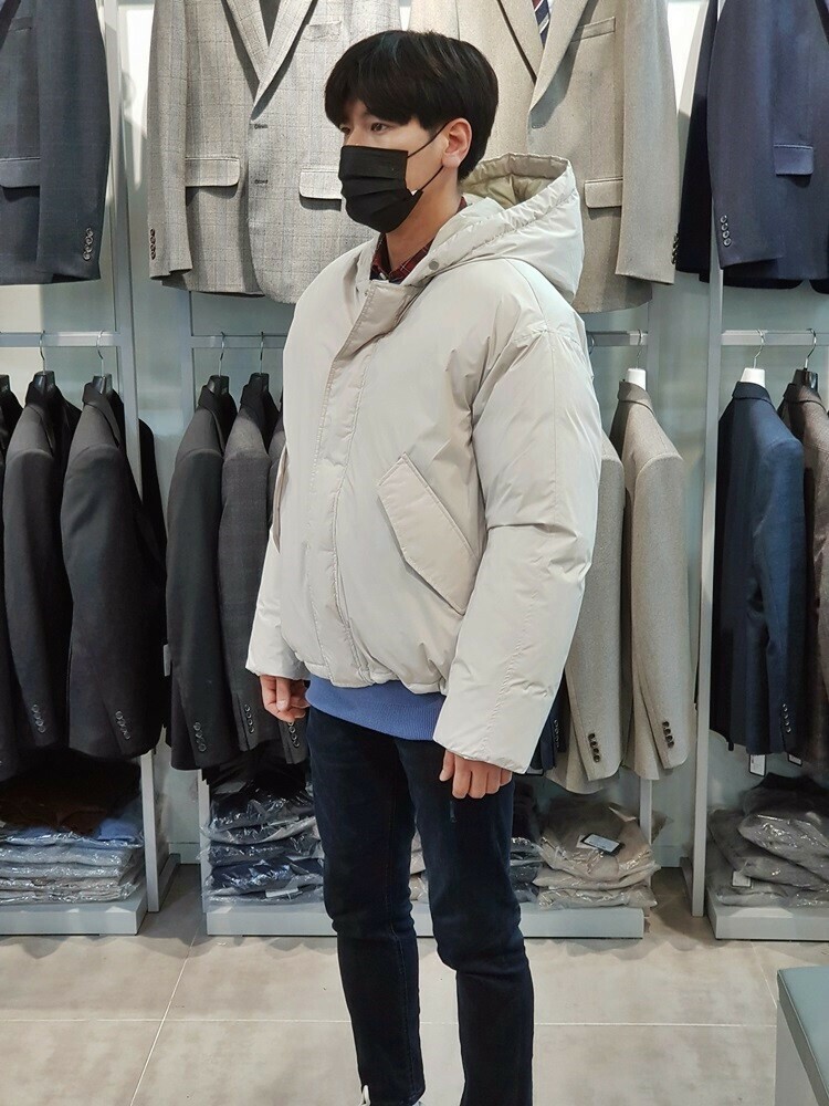 남성 오버핏 구스다운 숏 패딩 깔끔한 느낌의 오버핏 입니다