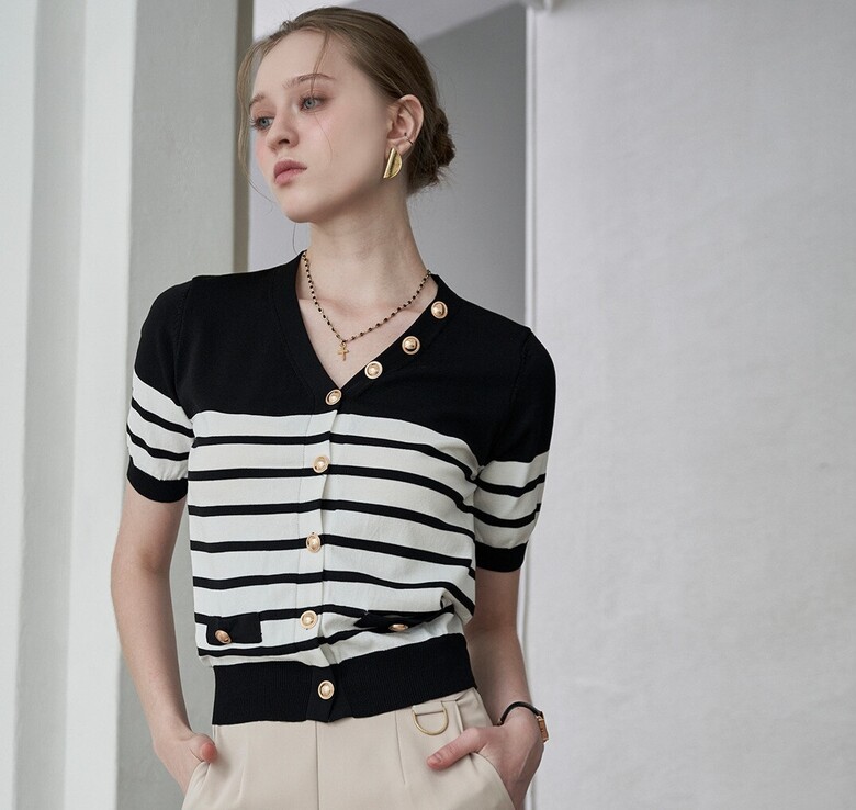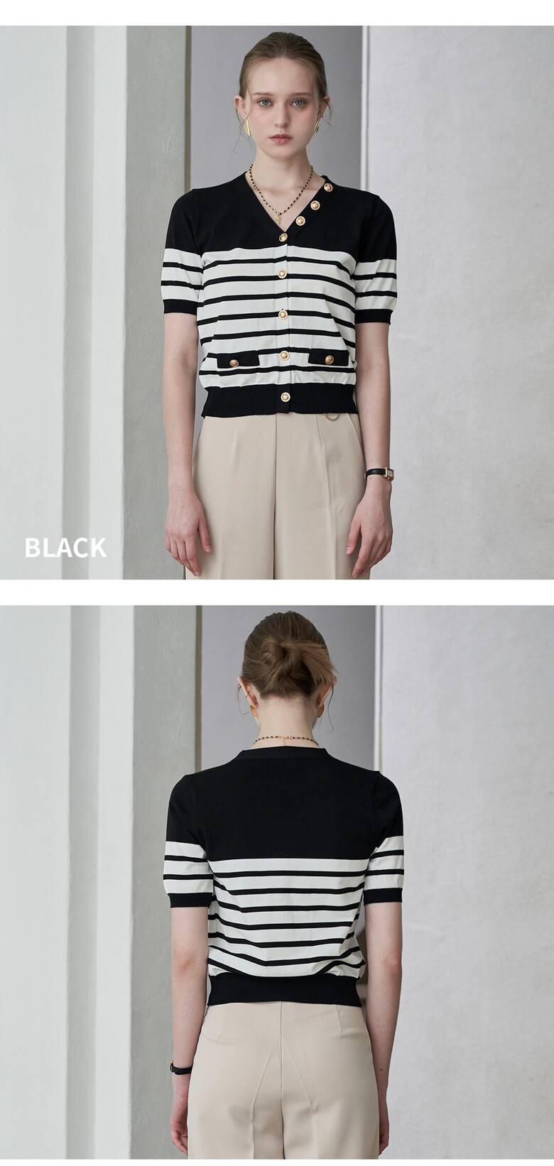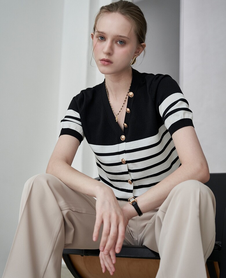 골드 단가라 브이 반팔 가디건 MM07CD301FJY