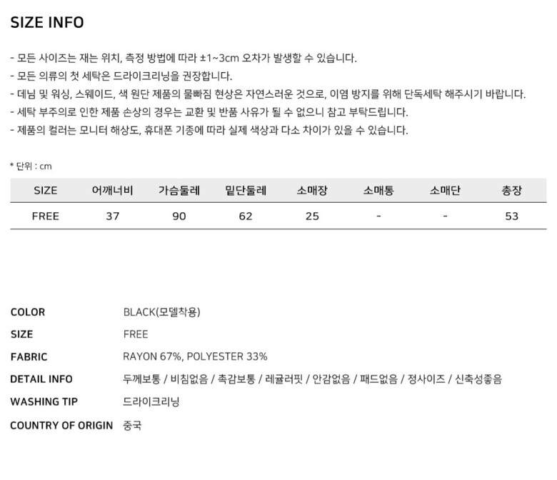 | 6. 세탁방법 및 취급시 주의사항 | 상품상세참조 |