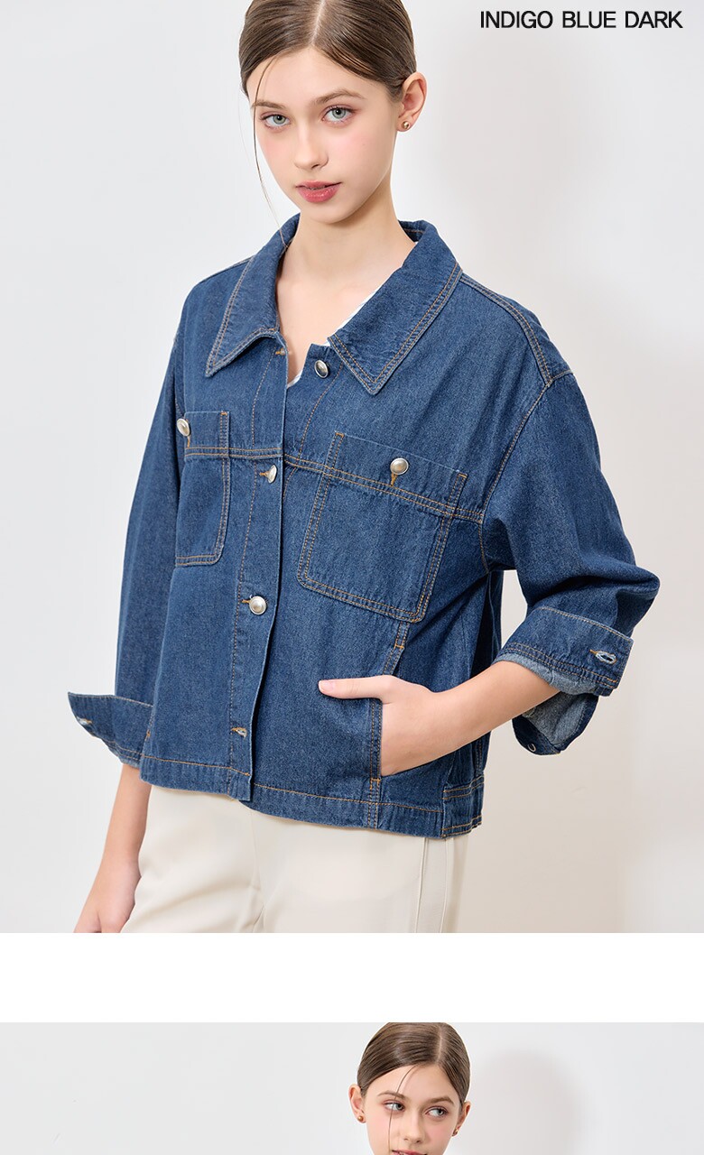 카라넥,라운드넥과 포켓 디테일이 더해져있는 캐주얼하고 세련된 무드의 데님 셔켓입니다.