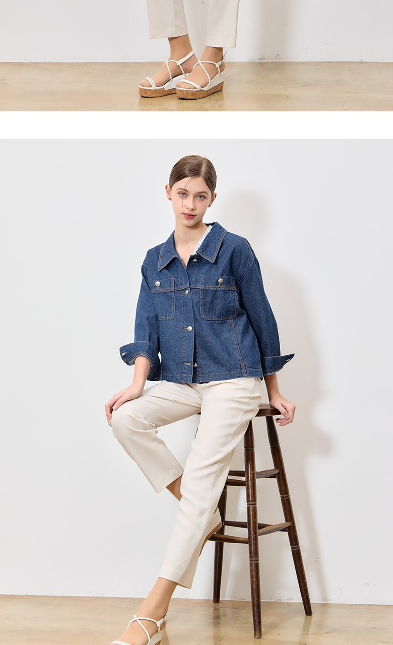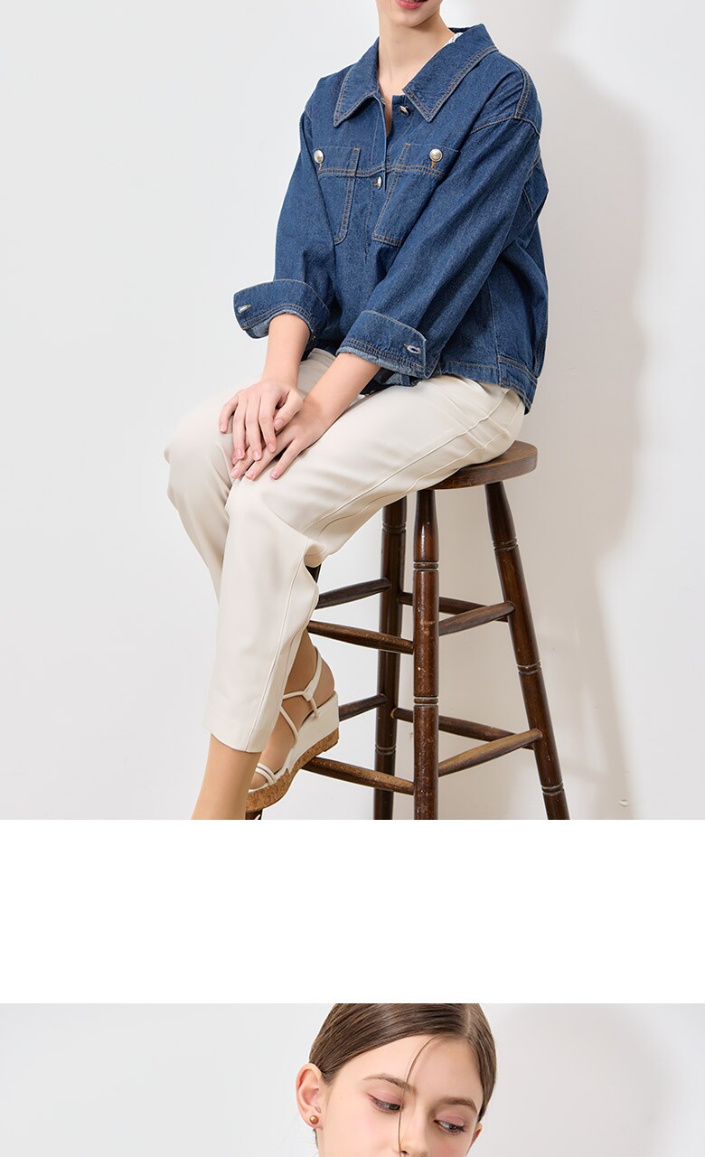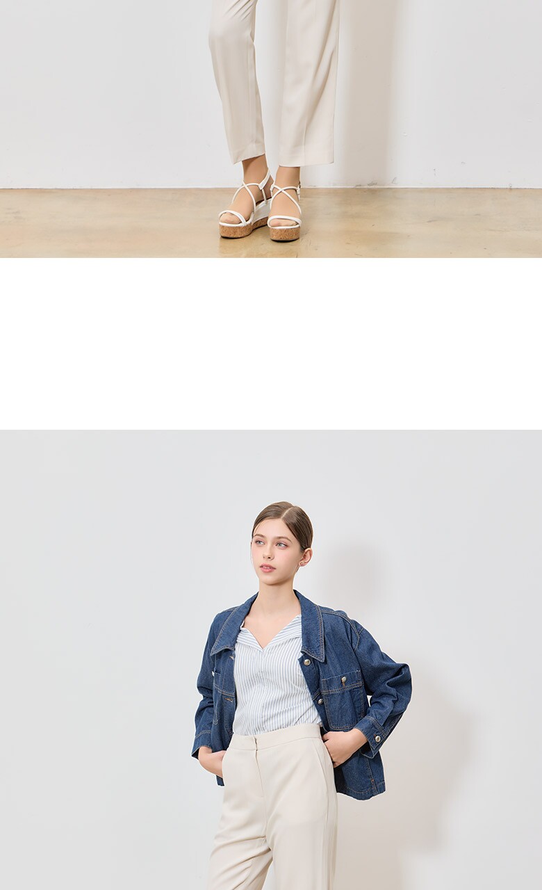 얇은 원단과 가벼운 착용감으로 SS시즌 원피스,다양한 상하의코디와 스타일링하기 좋은 아우터로 적극 추천드립니다