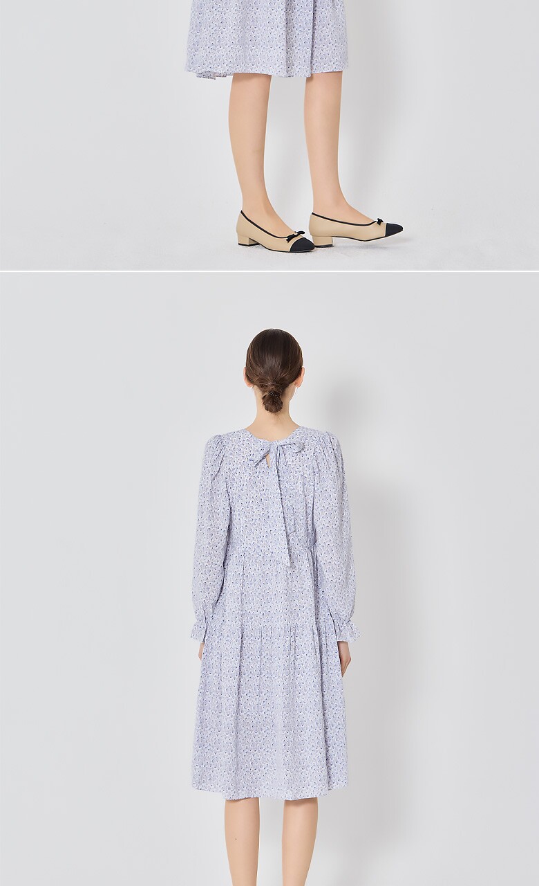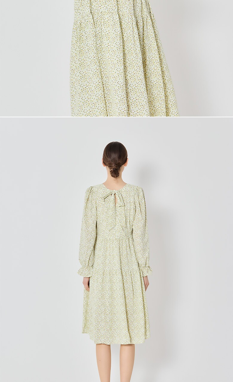 플라워패턴의 러블리한 원피스입니다. 뒷면 V넥 랩스타일 포인트로 리본으로 끈을묶어 연출하시면 귀여움이 더해집니다. 브랜드만의 고급 소재를 활용하여 우수한 착용감을 선사합니다.