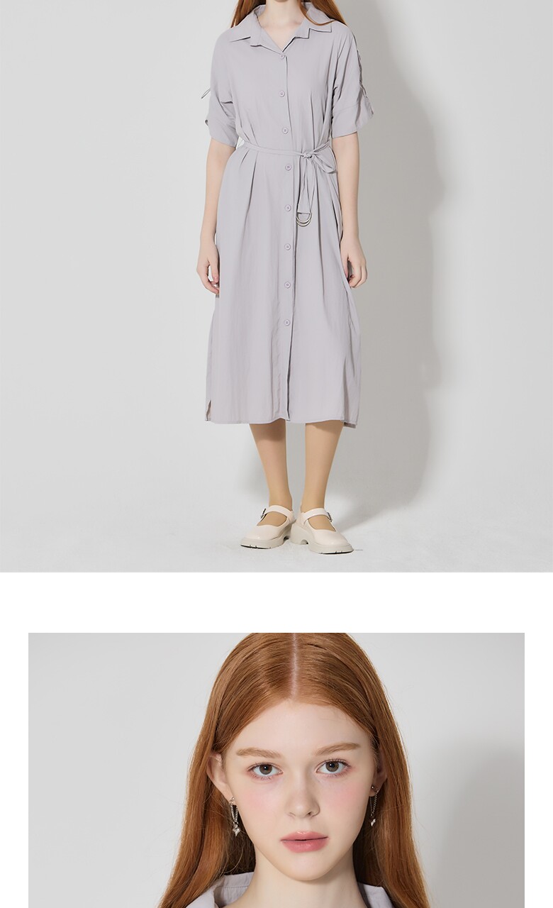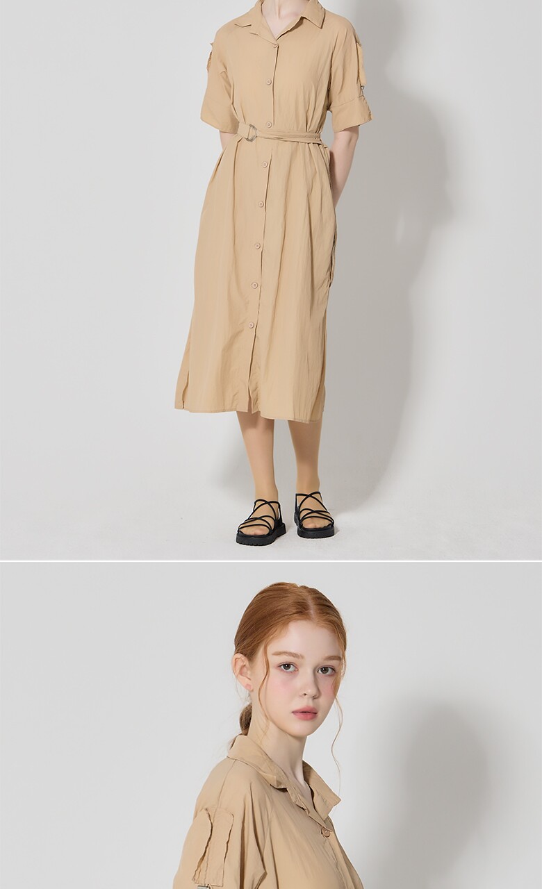ITEM : 소매 스트링 셔링 벨티드 원피스
