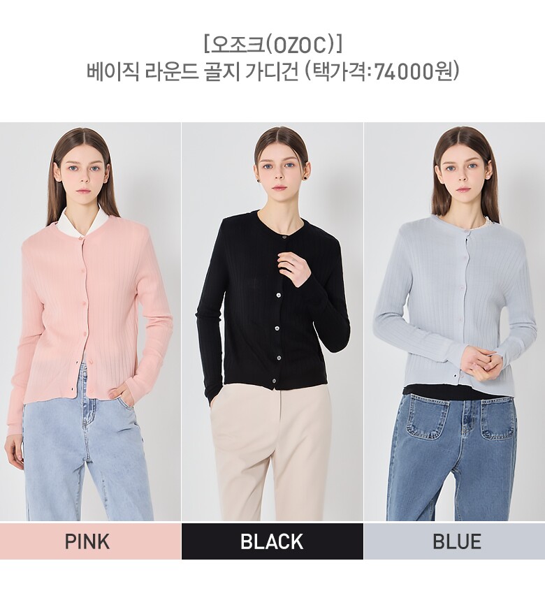 [오조크(OZOC)] 베이직 라운드 골지 가디건 (택가격: 74000원)