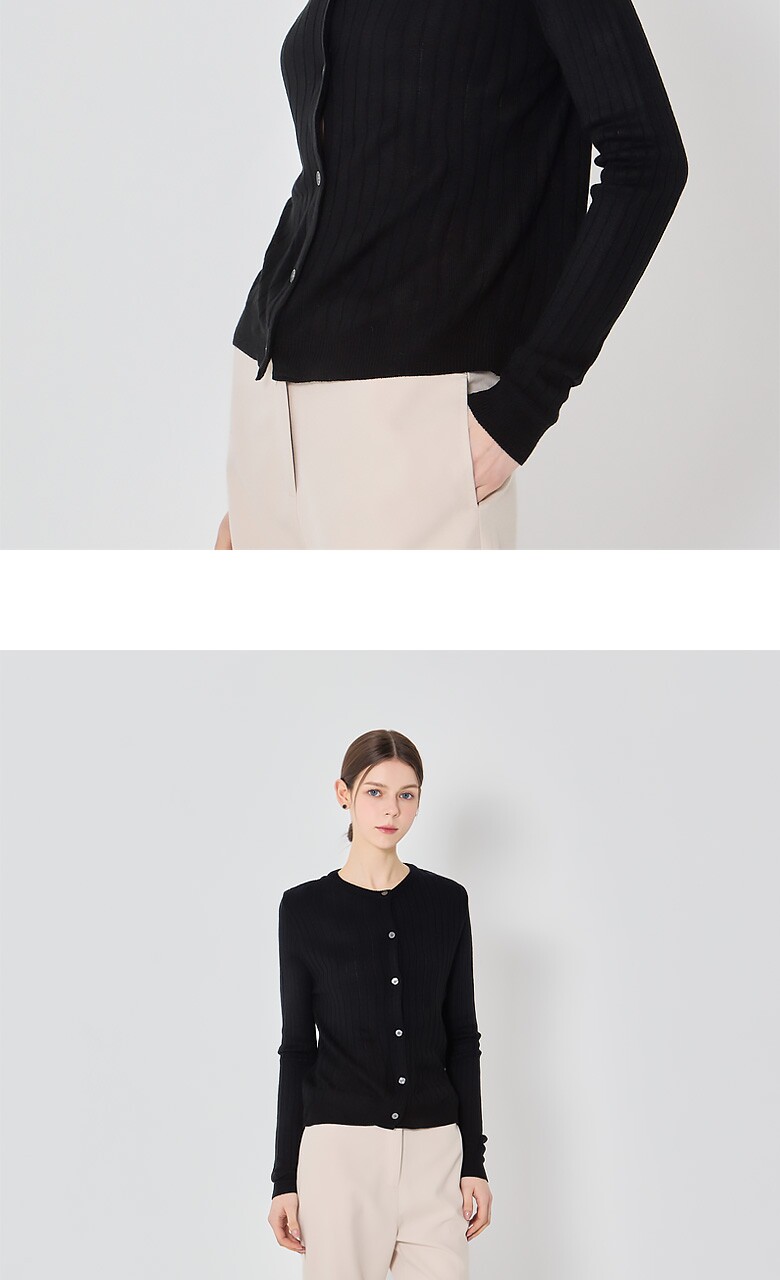 깔끔한 기본 라인의 가디건입니다. 골지라인으로 슬림하게 떨어지는 라인입니다. 브랜드만의 고급 소재를 활용하여 우수한 착용감을 선사합니다.