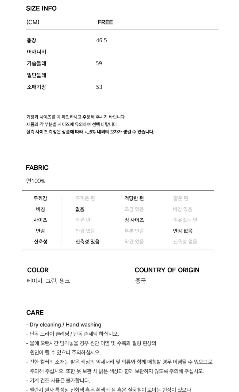 2. 색상 | BE_베이지/GR_그린/PK_핑크 |