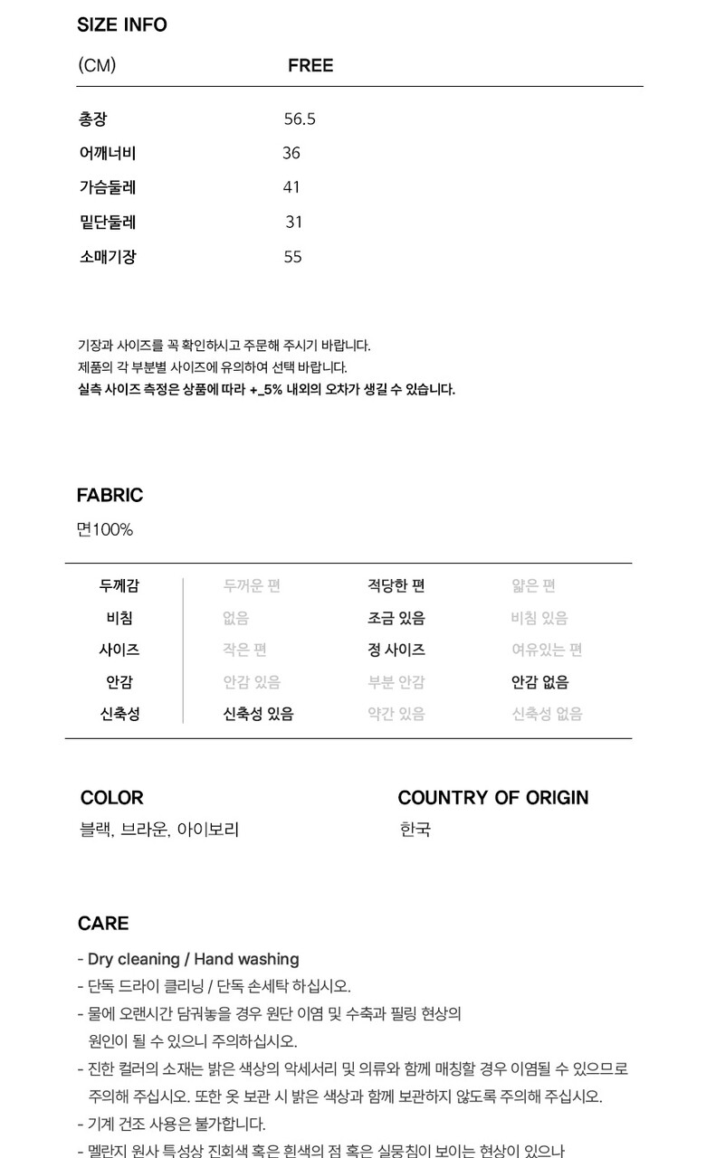 | 2. 색상 | BK_블랙/BR_브라운/IV_아이보리 |