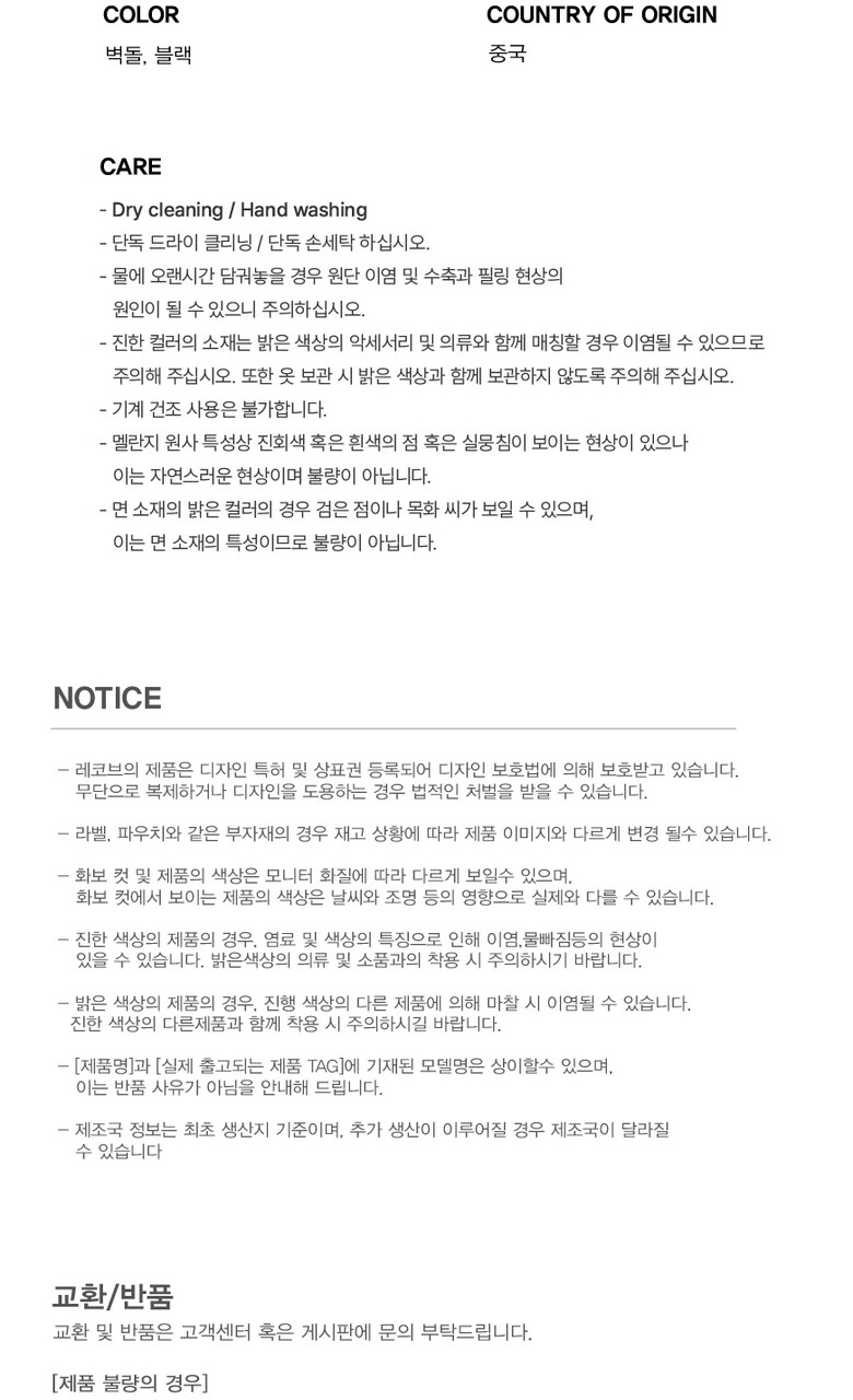 반품 유의사항