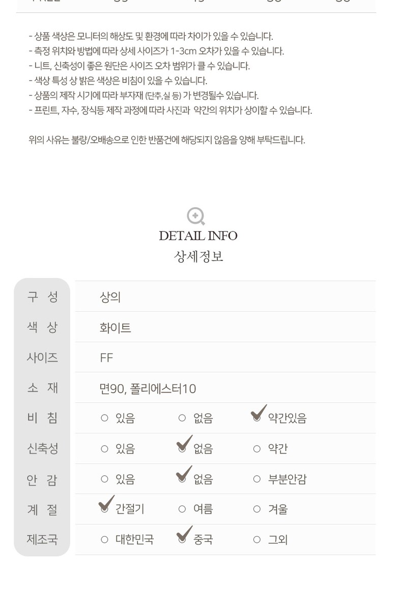 1. 제품 소재 (섬유의 조성 또는 혼용률을 백분율로 표시, 기능성인 경우 성적서 또는 허가서) | 상세페이지 참조 |