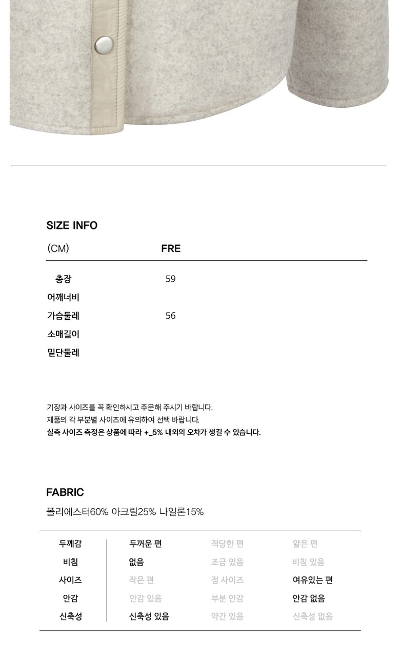 • 처음 배송된 상품상태와 다를 경우(세탁/착용 후 외출하신 경우) 반품이 불가합니다.
