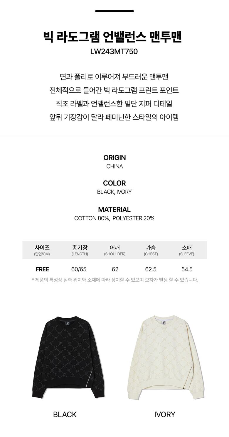 [라이프워크] 여성) 빅 라도그램 언밸런스 맨투맨 (LW243MT750-40)