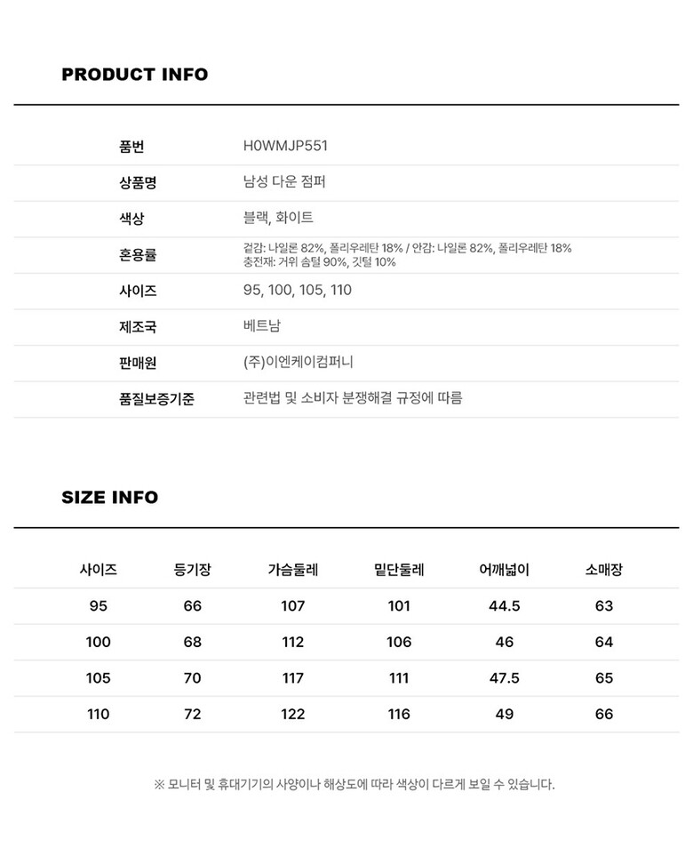 1. 제품 소재 (섬유의 조성 또는 혼용률을 백분율로 표시, 기능성인 경우 성적서 또는 허가서) 상세설명참고