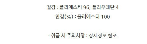 | 1. 제품 소재 (섬유의 조성 또는 혼용률을 백분율로 표시, 기능성인 경우 성적서 또는 허가서) | 폴리우레탄 4% ,폴리에스테르 96% |