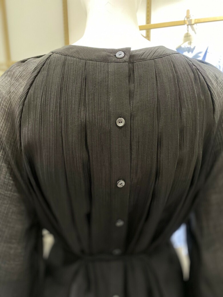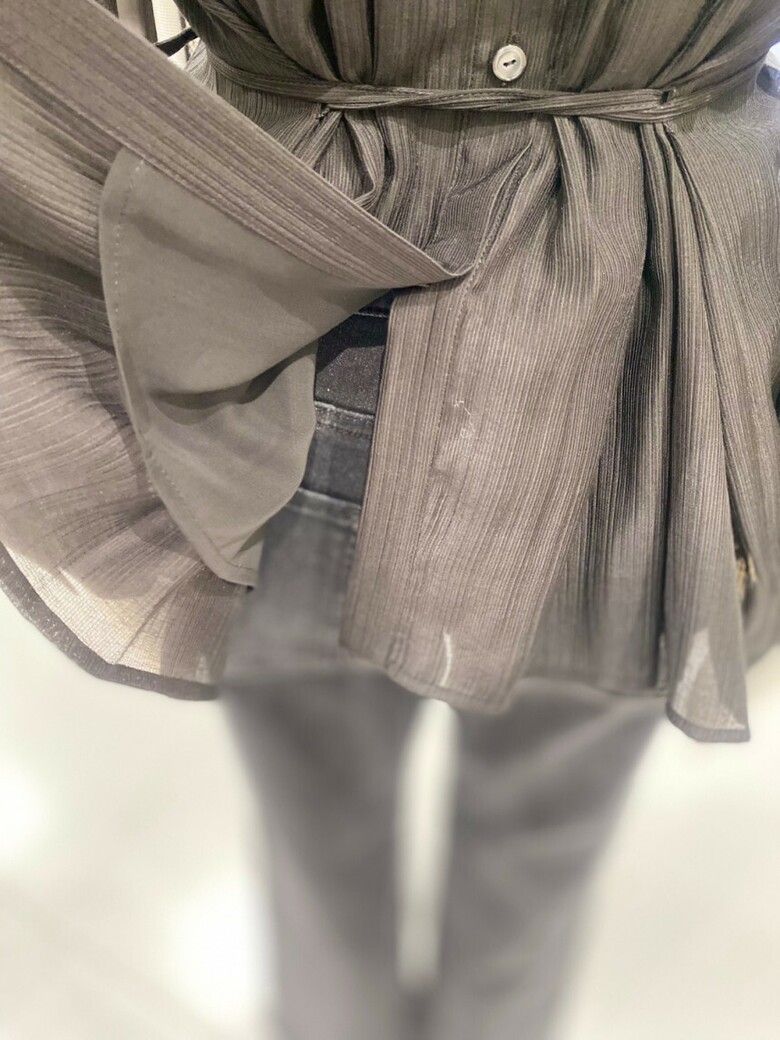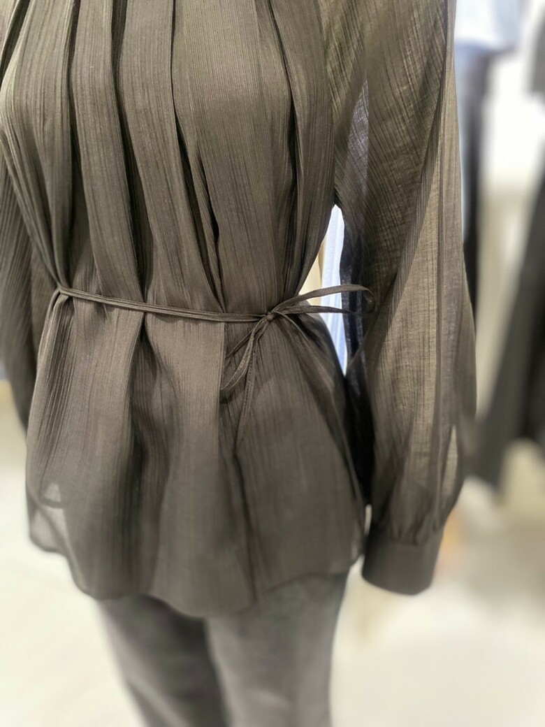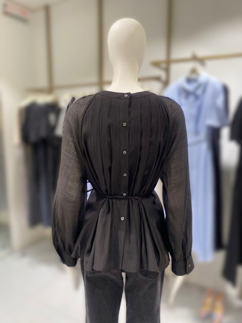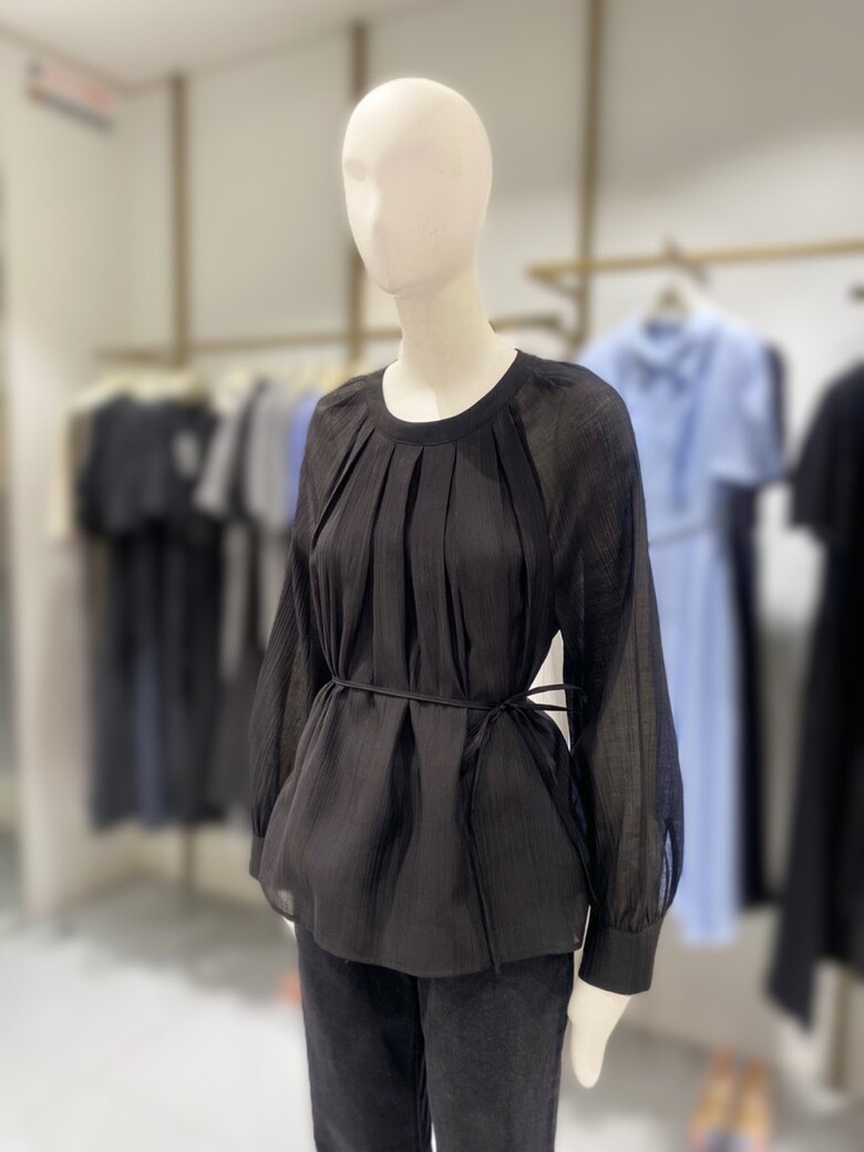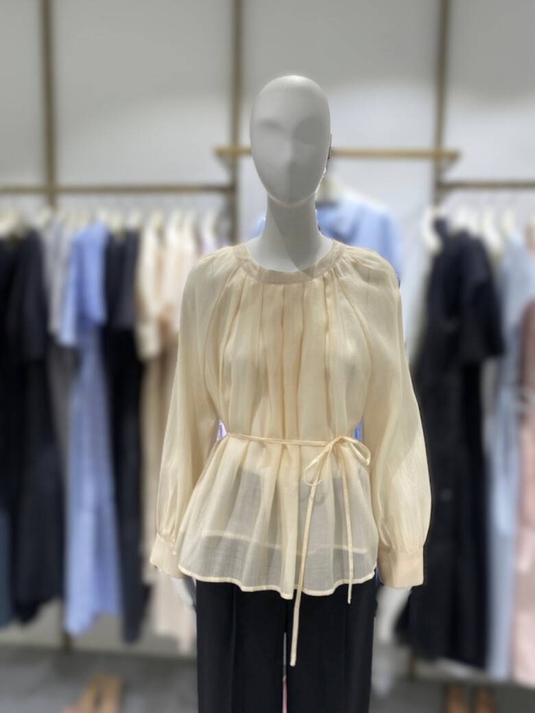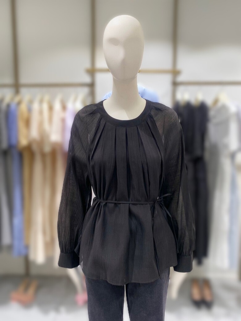 라운드넥 벨티드 플리츠 블라우스 NJW5AB812