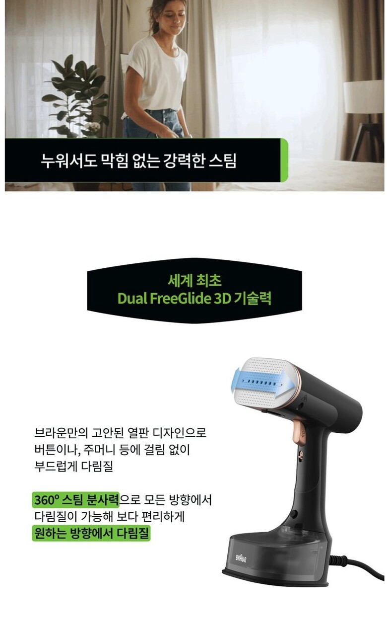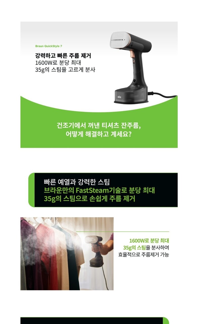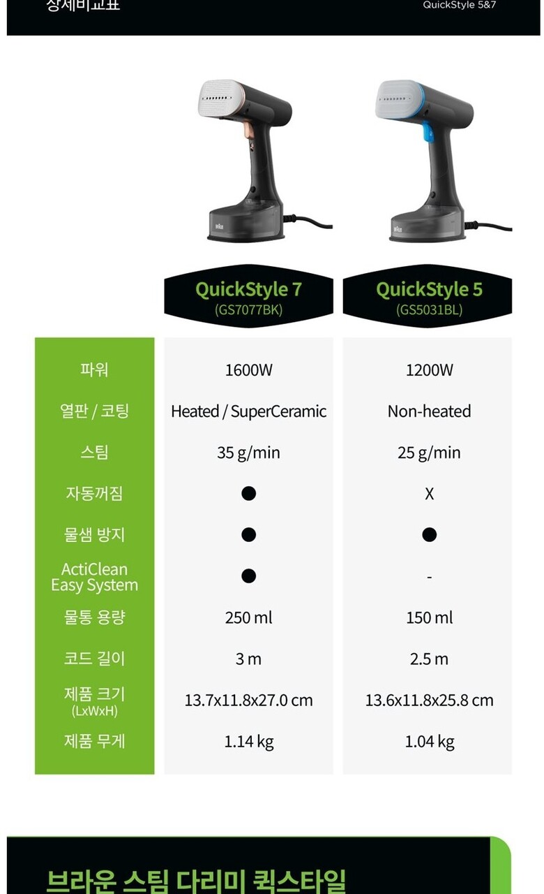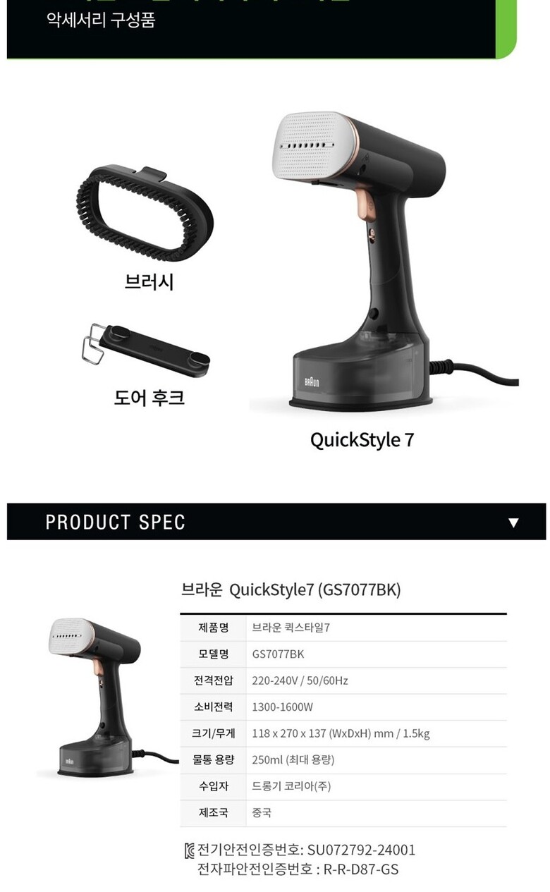브라운 퀵스타일7 멀티 앵글 핸디형 스팀 다리미 GS7077BK