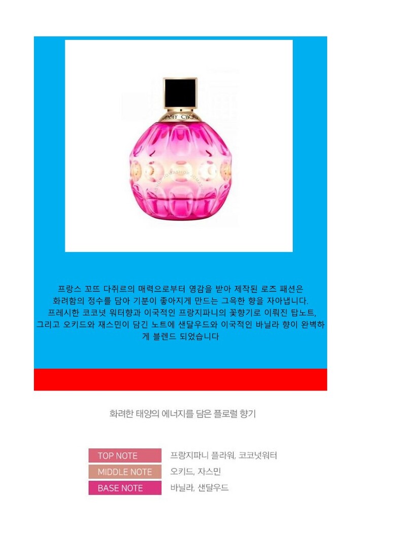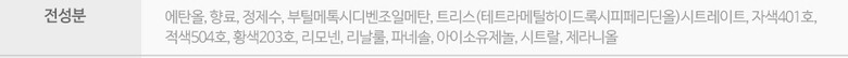 | 9. 사용 시 주의사항 | ※ 화장품을 사용하여 다음과 같이 이상이 있을 경우 사용을 중지할 것이며 계속사용하면 증상을 악화시키므로 피부과 전문의 등에게 상담할 것 1. 사용상 붉은반점, 부어오름, 가려움증, 자극 등의 이상이 있을경우 2. 적용부의가 직사광선에 의해 위와 같은 이상이 있을 경우 3. 상처가 있는 부위, 습진 및 피부염 등의 이상이 있는 부위에는 사용을 하지 말것 4. 알코올류, 에탄올, 수용성(알코올 함유 제품에 해당)/ 화기에 주의할 것. |