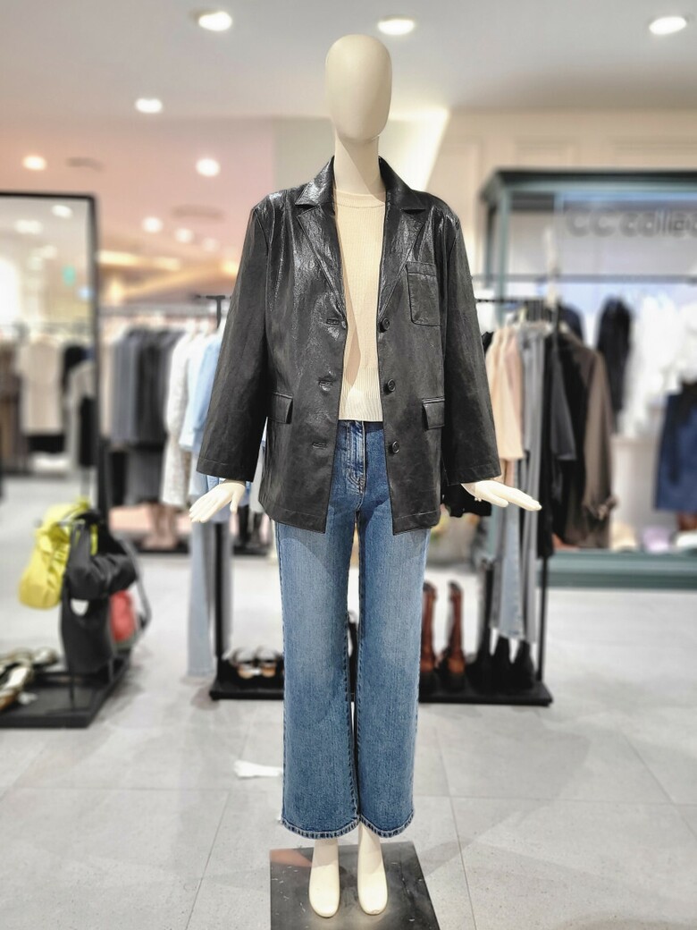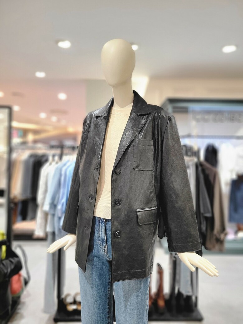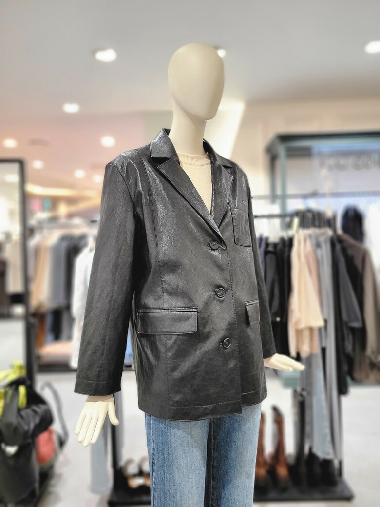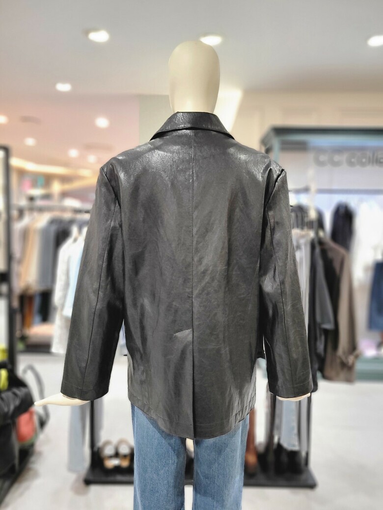 - 광택감있는 에코 레더 소재로 고급스러운 자켓입니다.