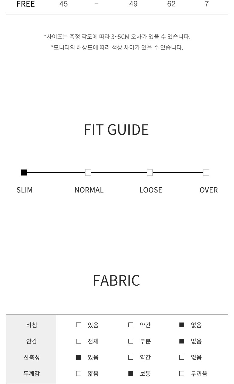 | 1. 제품 소재 (섬유의 조성 또는 혼용률을 백분율로 표시, 기능성인 경우 성적서 또는 허가서) | 상세페이지 참조 |