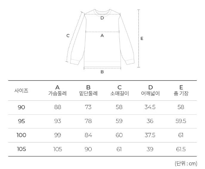 사이즈 단위는 cm이며,재는 위치에 따라 1~3cm사이즈 오차가