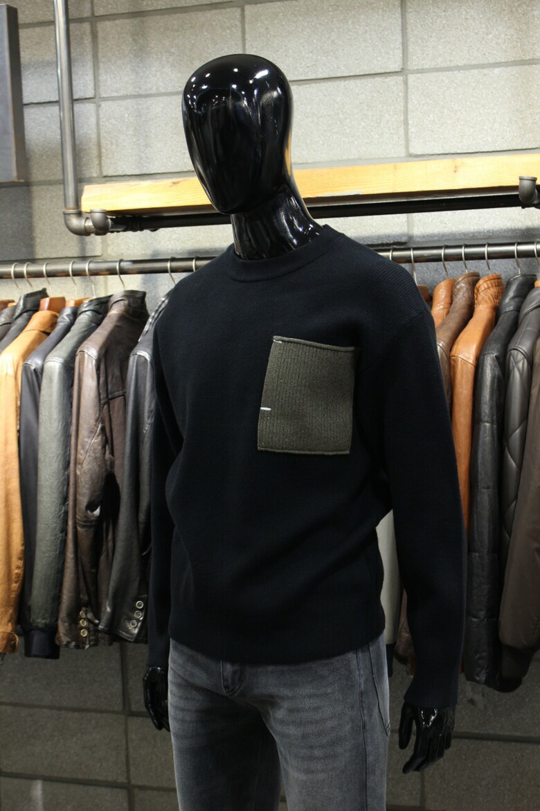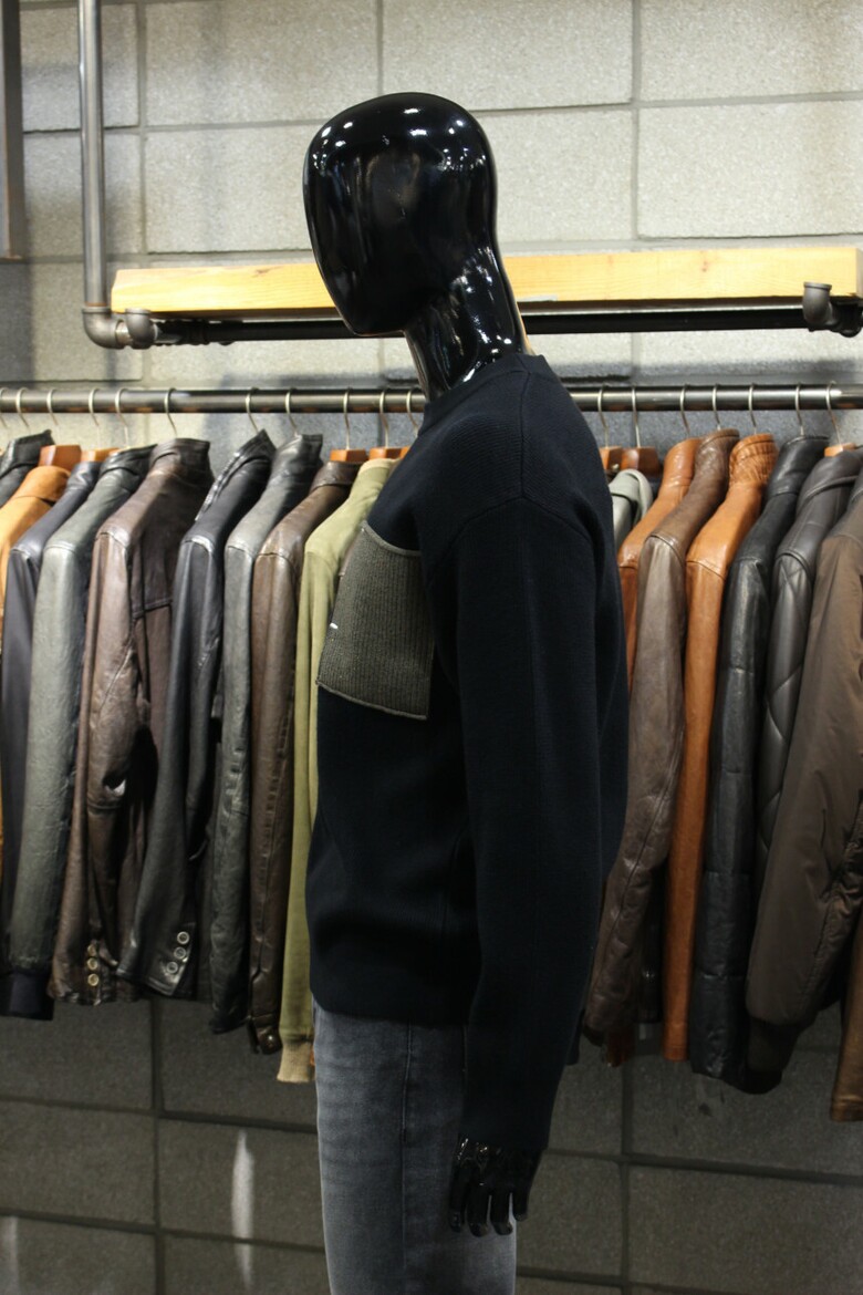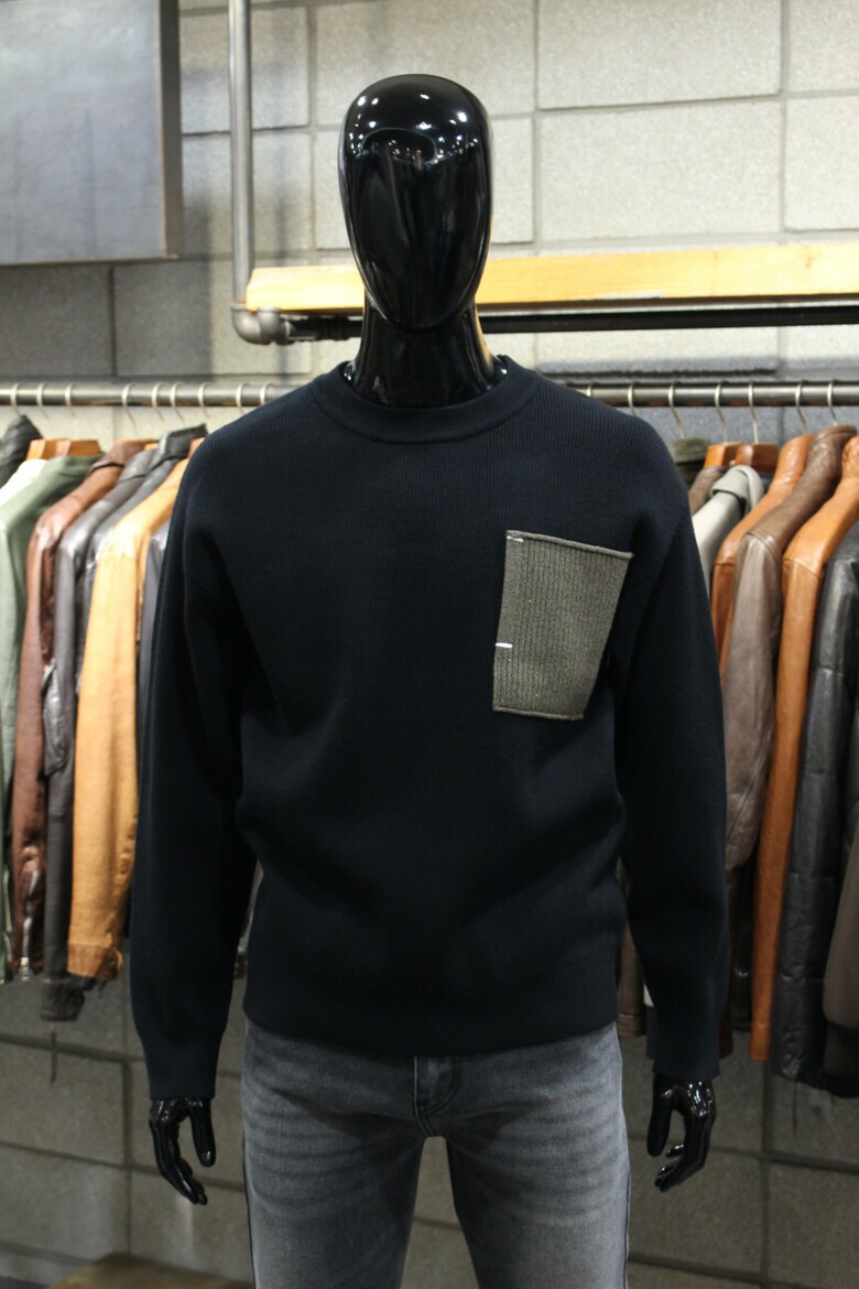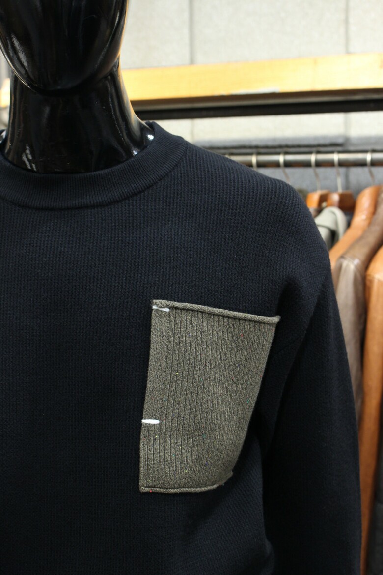 리오셀울블랜드 2COLOR 드랍숄더루즈핏 포켓배색크루넥니트 m-qnit56