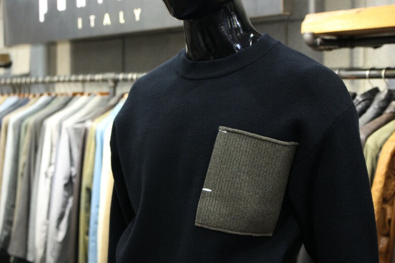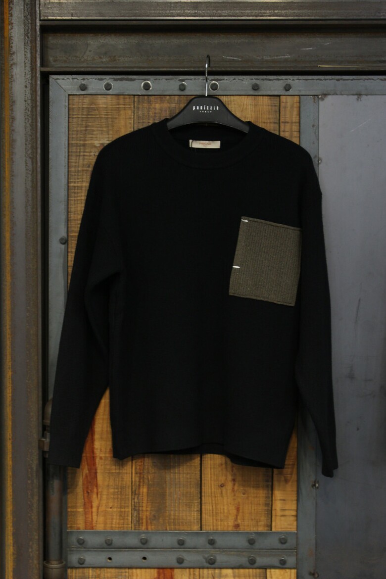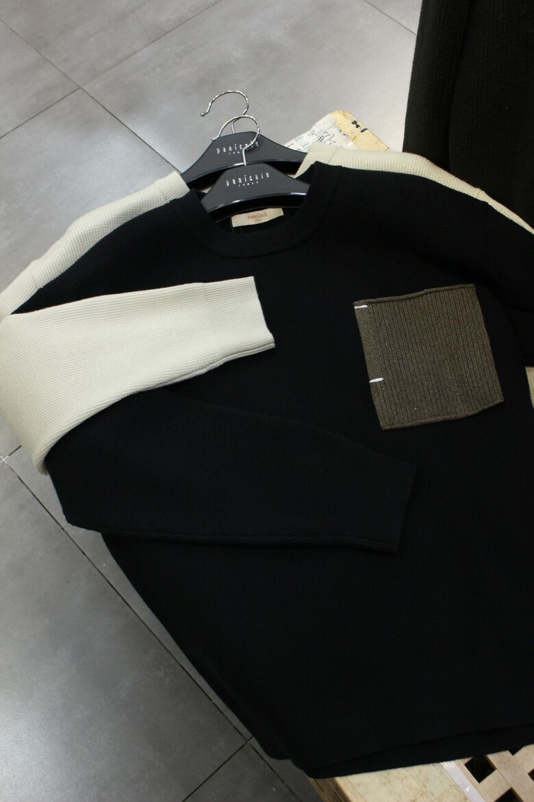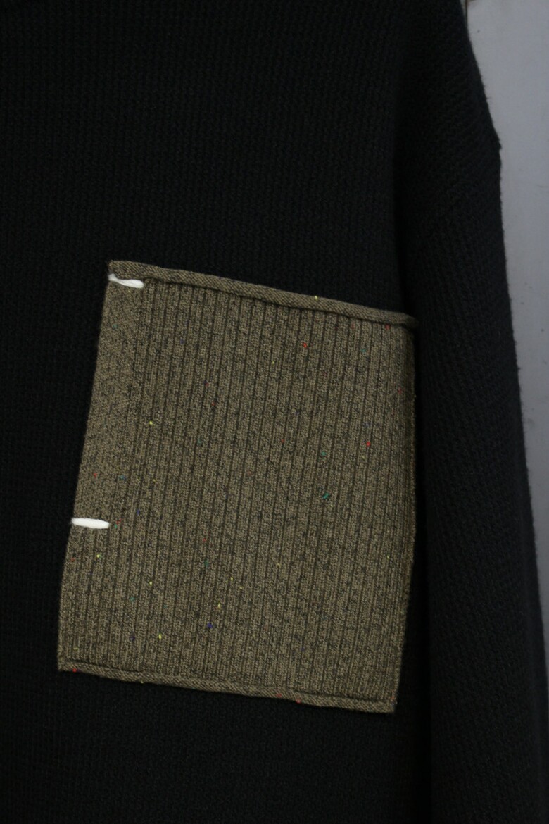 리오셀울블랜드 2COLOR 드랍숄더루즈핏 포켓배색크루넥니트 m-qnit56