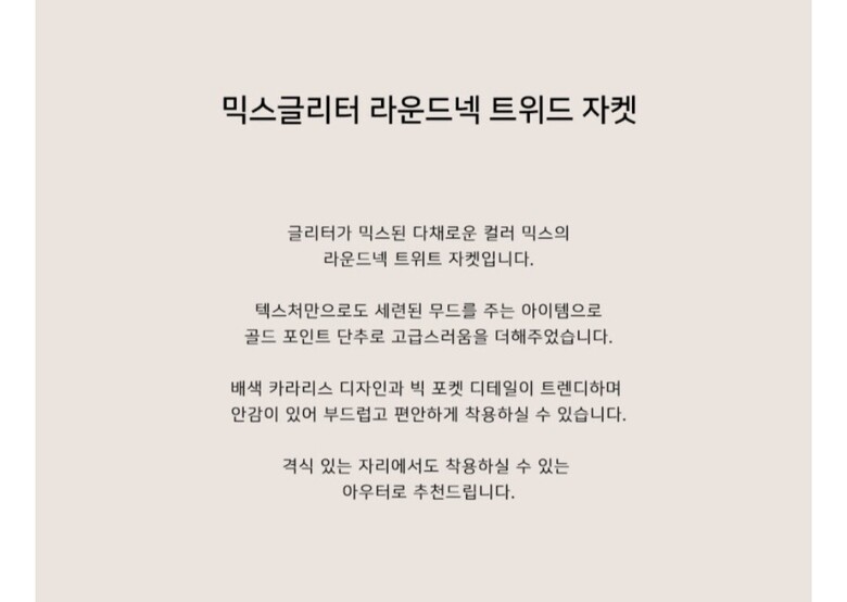 믹스글리터 라운드넥 트위드 자켓 ML04JK204HJY