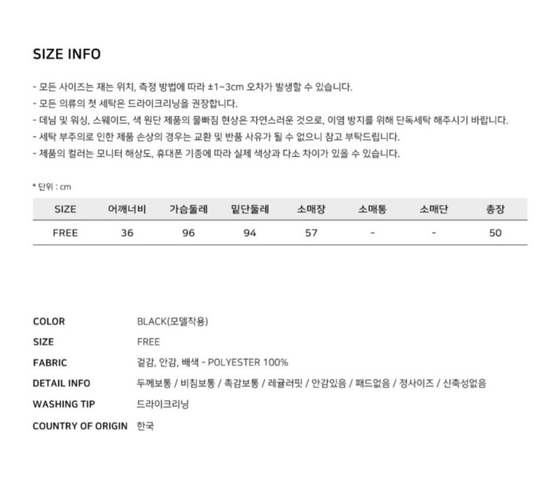 | 6. 세탁방법 및 취급시 주의사항 | 상품상세참조 |