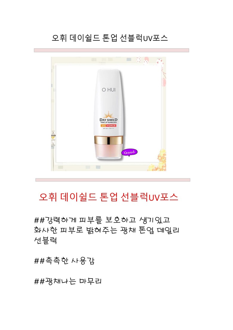 LG 오휘 데이쉴드 톤업 선블럭UV포스 50ml
