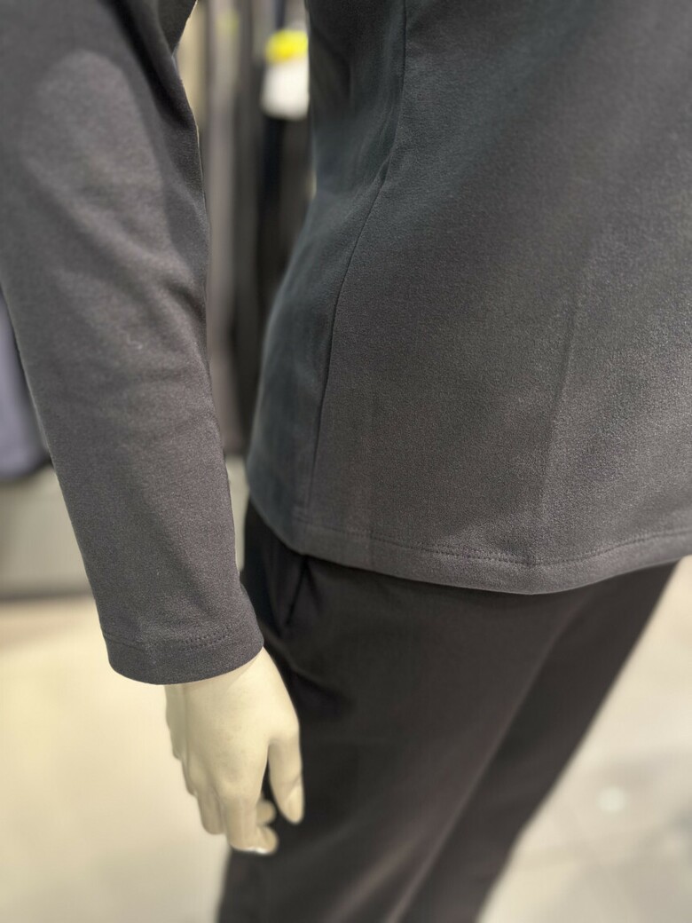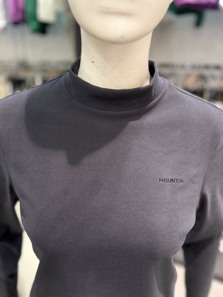 신축성이 좋은 골지 원단에 앞뒤로 기모를 내어 보온성을 높인 터틀넥 티셔츠