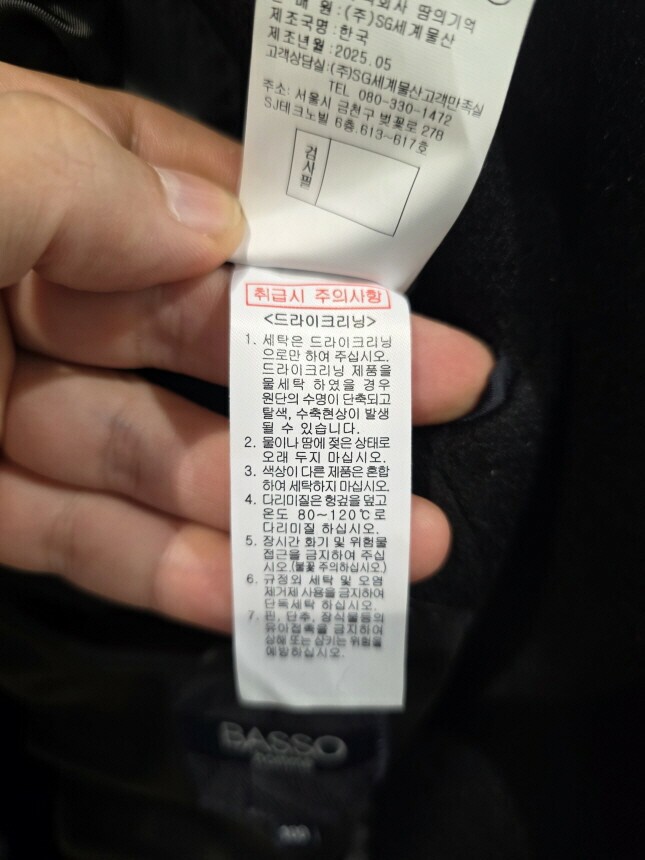 6. 세탁방법 및 취급시 주의사항 드라이크리닝