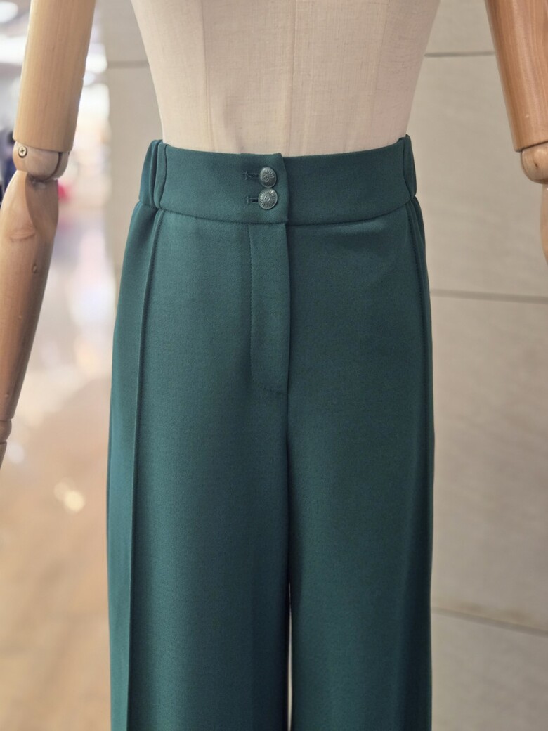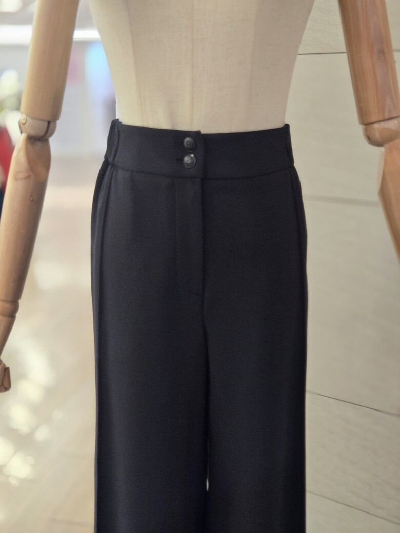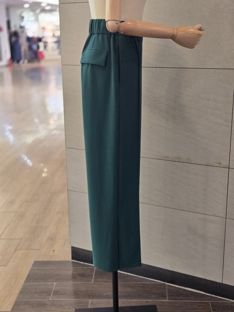 앞면 핀턱이 있어 다리선 날씬하고 길어보이는 밑단컷팅된 세련된 팬츠입니다.