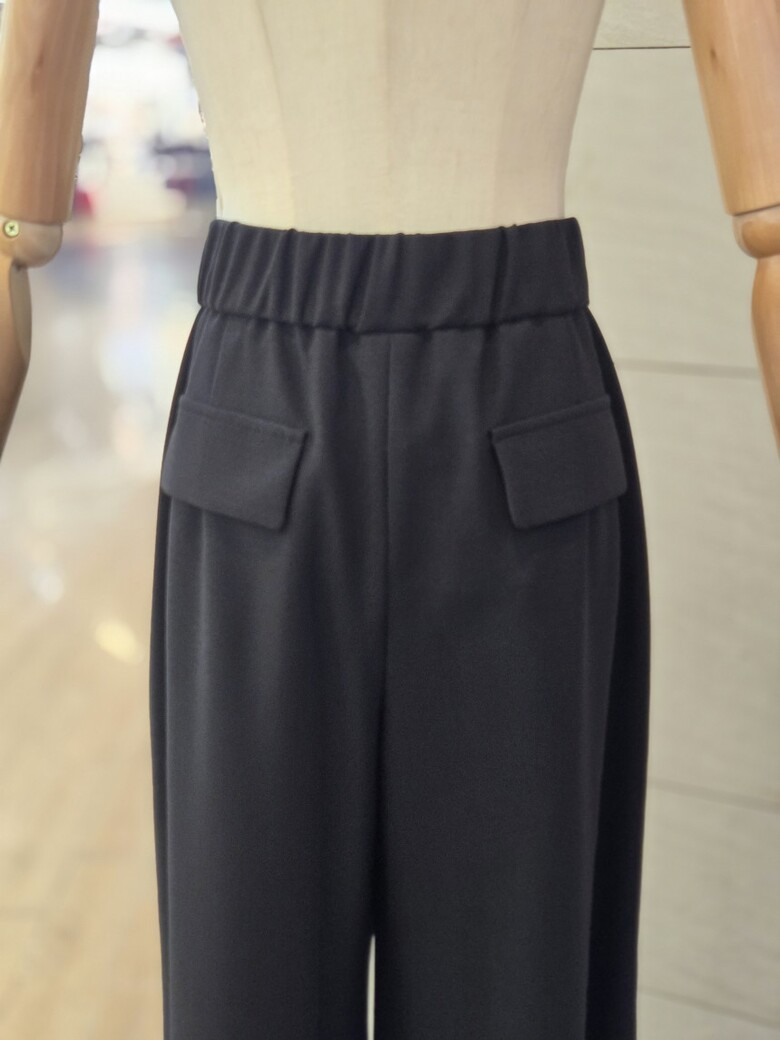 허리 뒷면 밴딩으로 착용시 가볍고 편한 와이드 팬츠입니다.