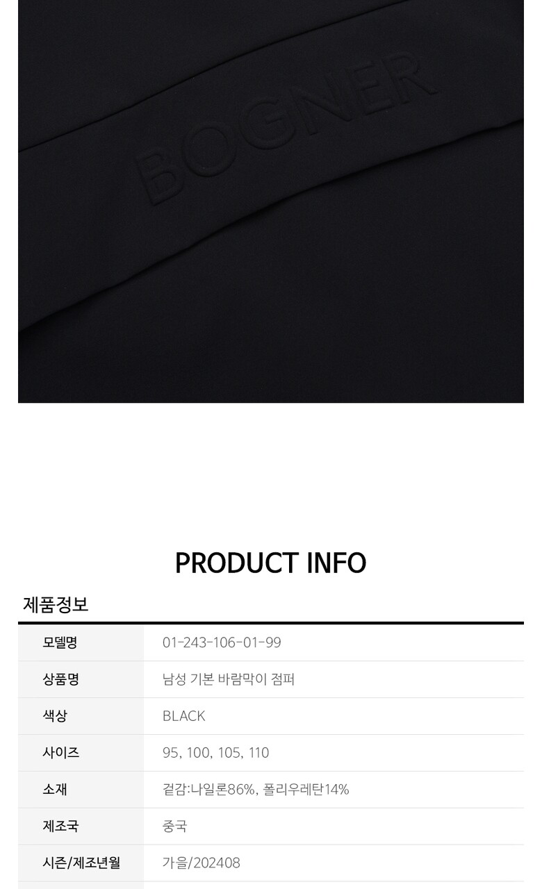 [보그너] 남성 기본 바람막이 점퍼 BLACK