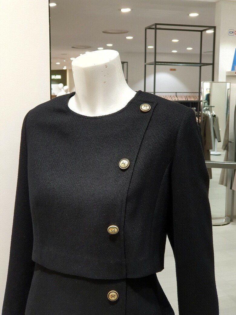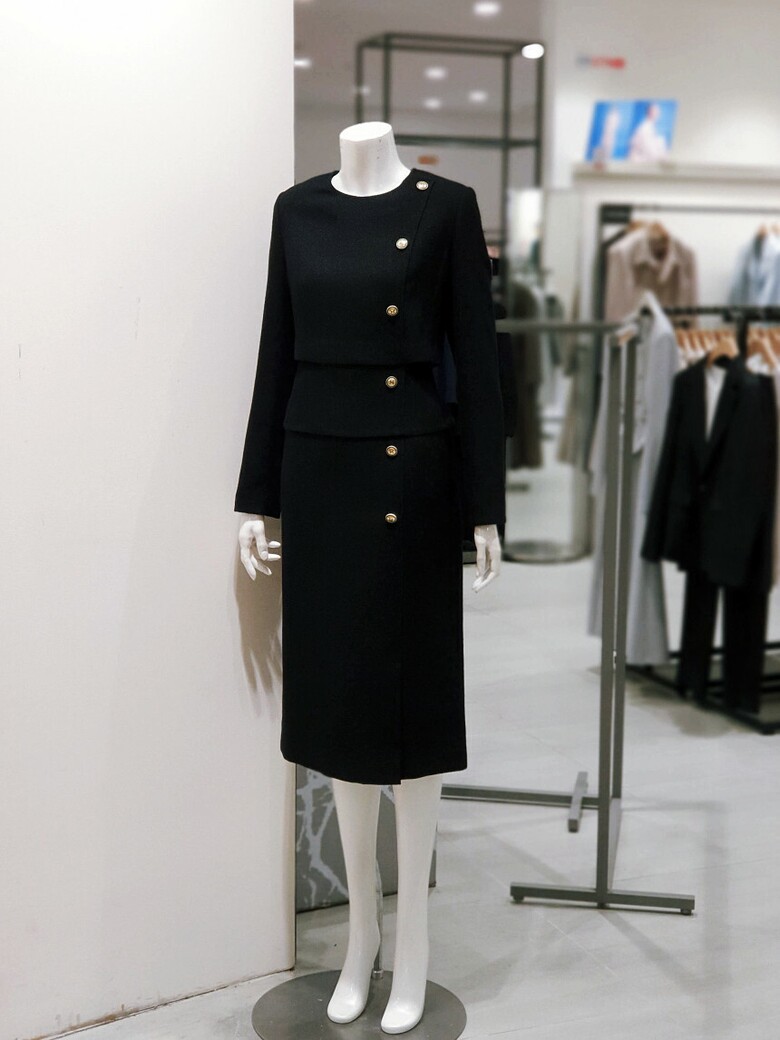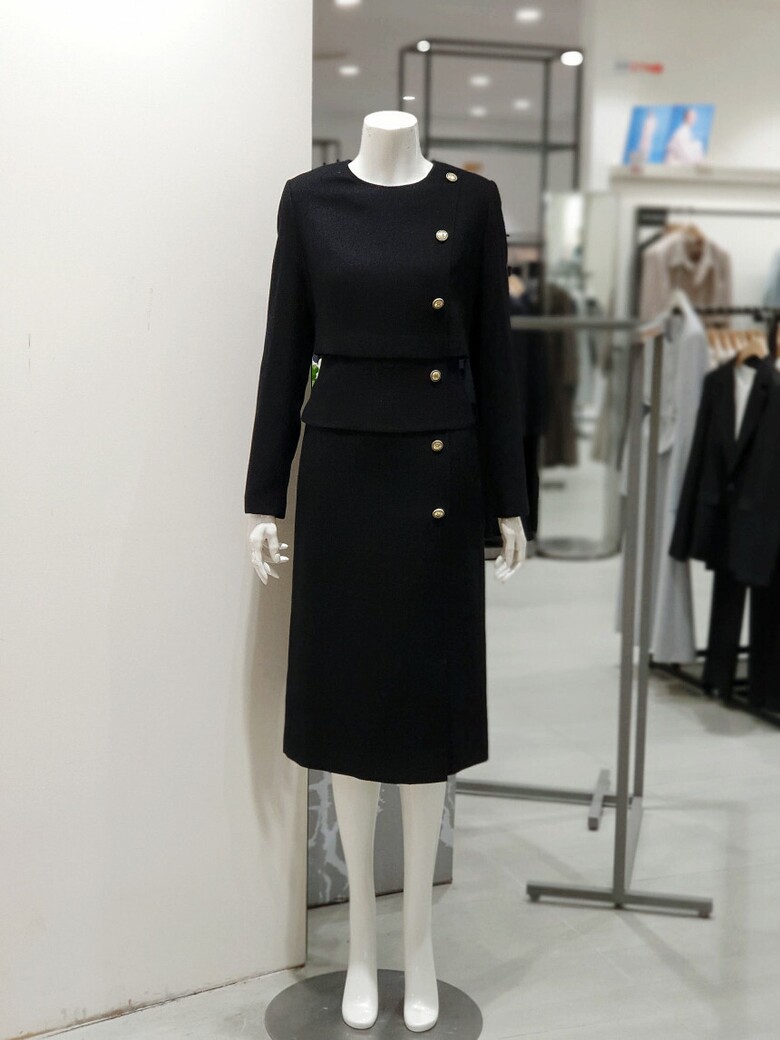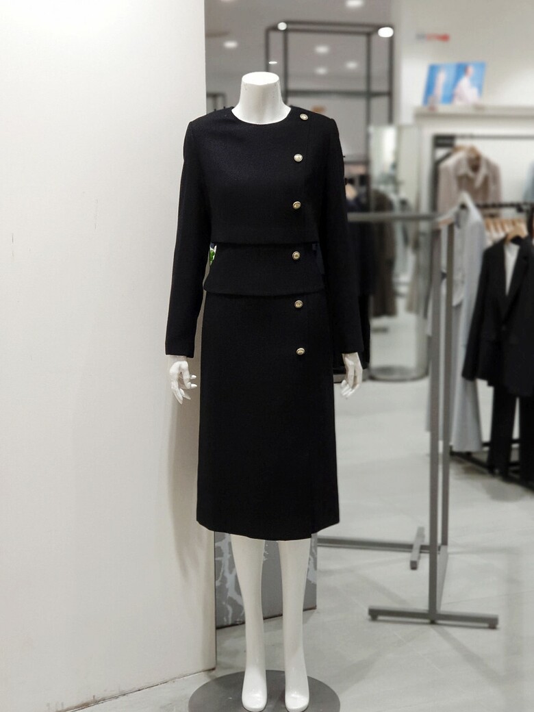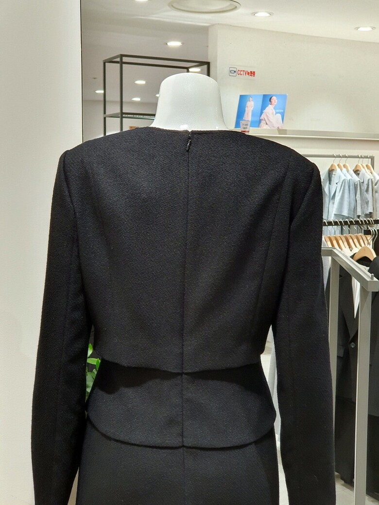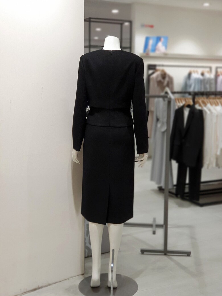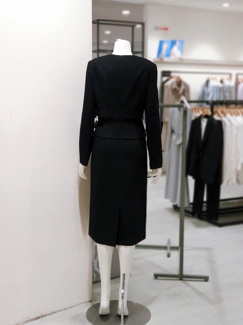 허리선에 절개와 페플럼 디자인을 더해 슬림 하고 입체적인 실루엣을 완성해 주며,