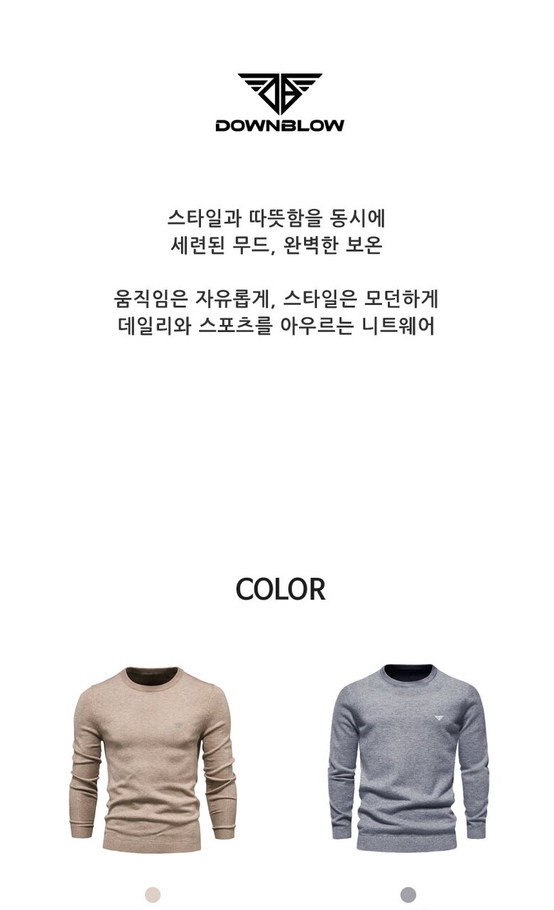 다운블로우 남성 라운드 베이직 니트 긴팔스웨터 1810M