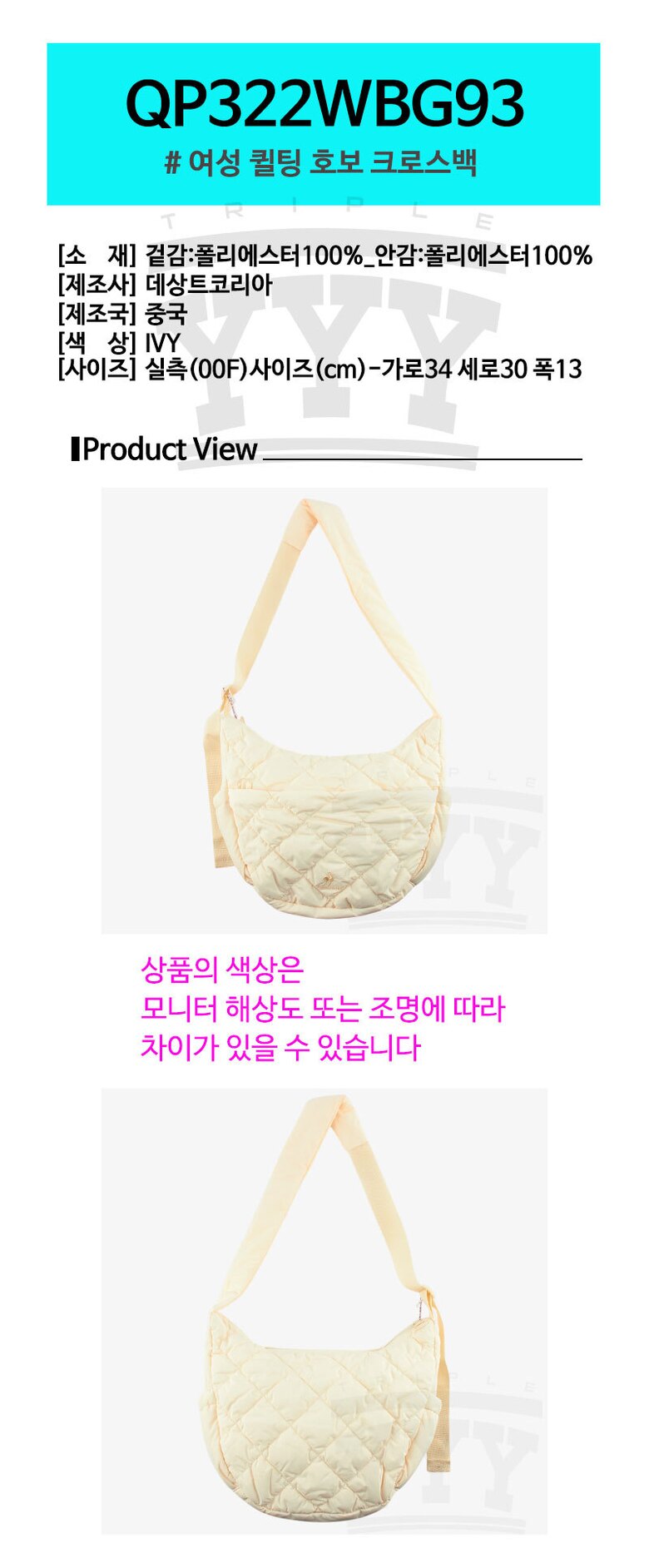 르꼬끄 여성 퀼팅 호보 크로스백 QP322WBG93 IVY