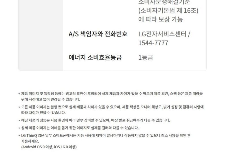 10. 품질보증기준 | 공정거래위원회 고시 소비자분쟁해결기준에 준함 |