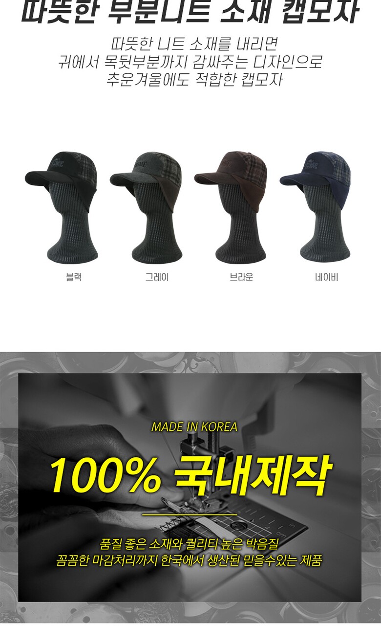 신사 따뜻한 부분니트 체크 캡모자 KM-HAW-9