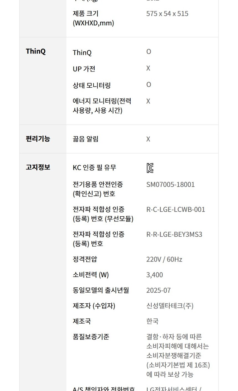 8. 제조사(수입자) | LG |