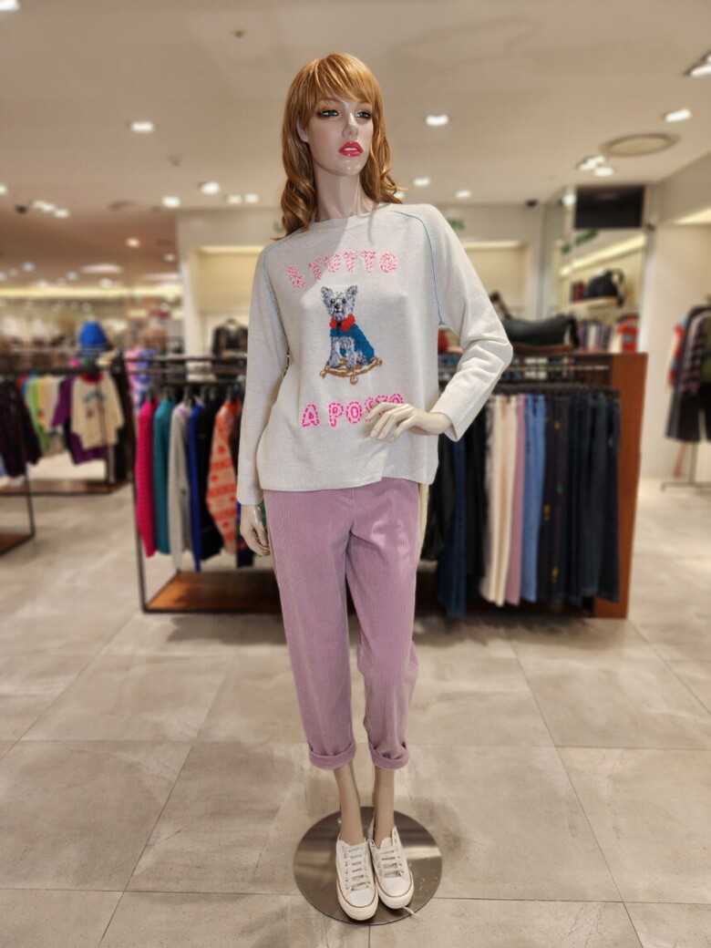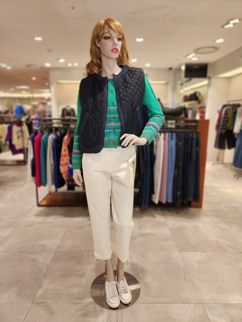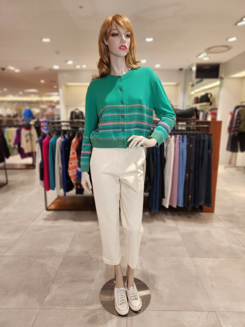 7.니트류는 자가드 프린트 기법으로 제작되어 앞부분에 예쁜 프린트처리가 되어 있습니다